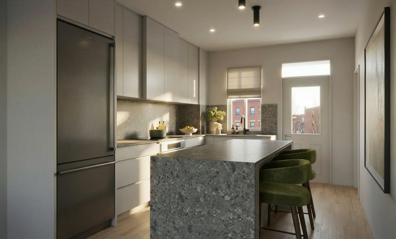 no natural light ceiling and walls same color as cabinets