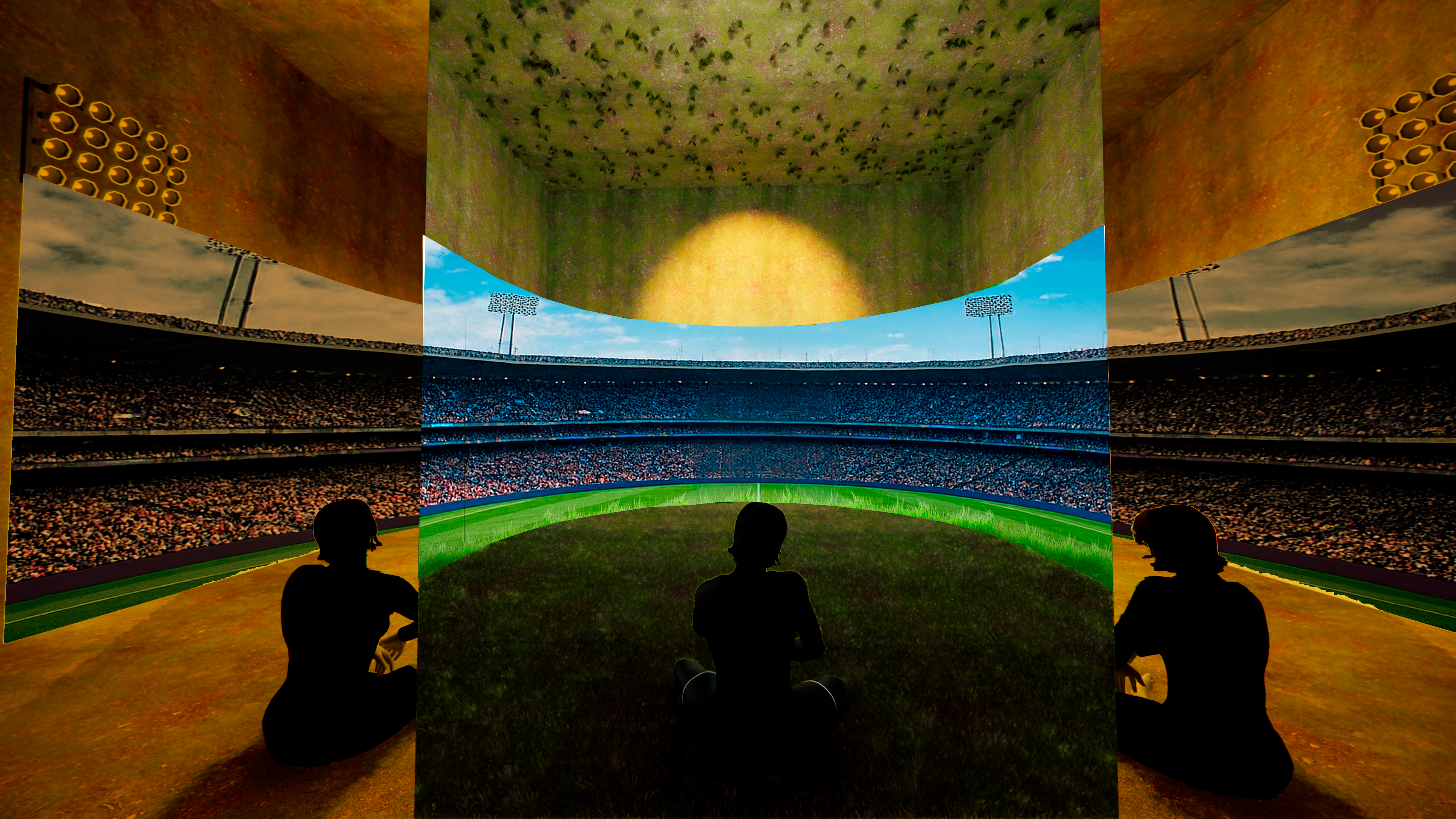 put green grass on the walls ceiling and floor