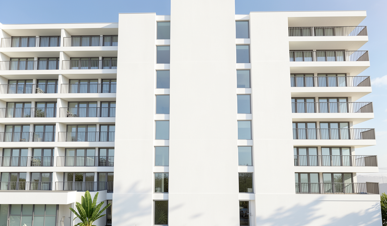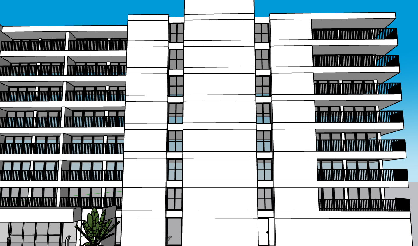 the vertical white walls are all smoth white stucco straight wall not bumps no lines vertical white walls should be not interrupted change the single hung windows to window wall system with a single hung mounted above a fixed panel so 6 small glass squares on each window like a grid do not change the size or anything else in the windows size or characteristics