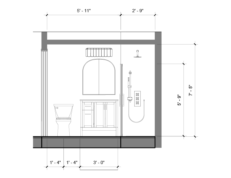 wainscotting with vertical 2 by 6 inch tiles and nice light from the light fixture brass hardware