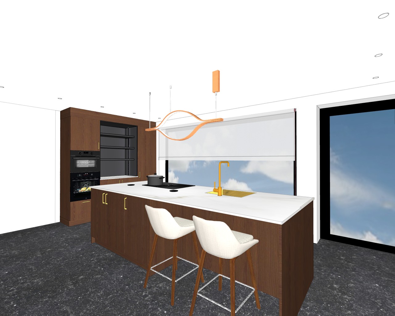 decorate original color doors from kitchen are darker brwon decorate open closet als with light only light in the sides of the open closet no light under the shelves