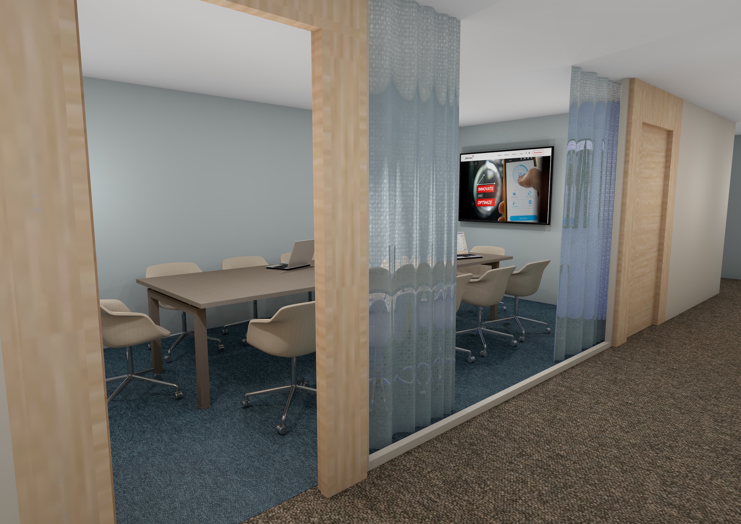 make it more realistic and not too dark but slightly warmer no blue notes in the lights the table is dark staind d brown cutains translucent blue and not so glassy