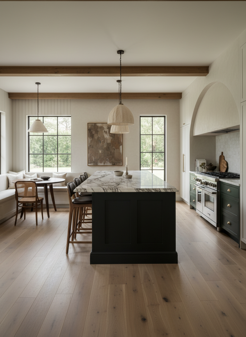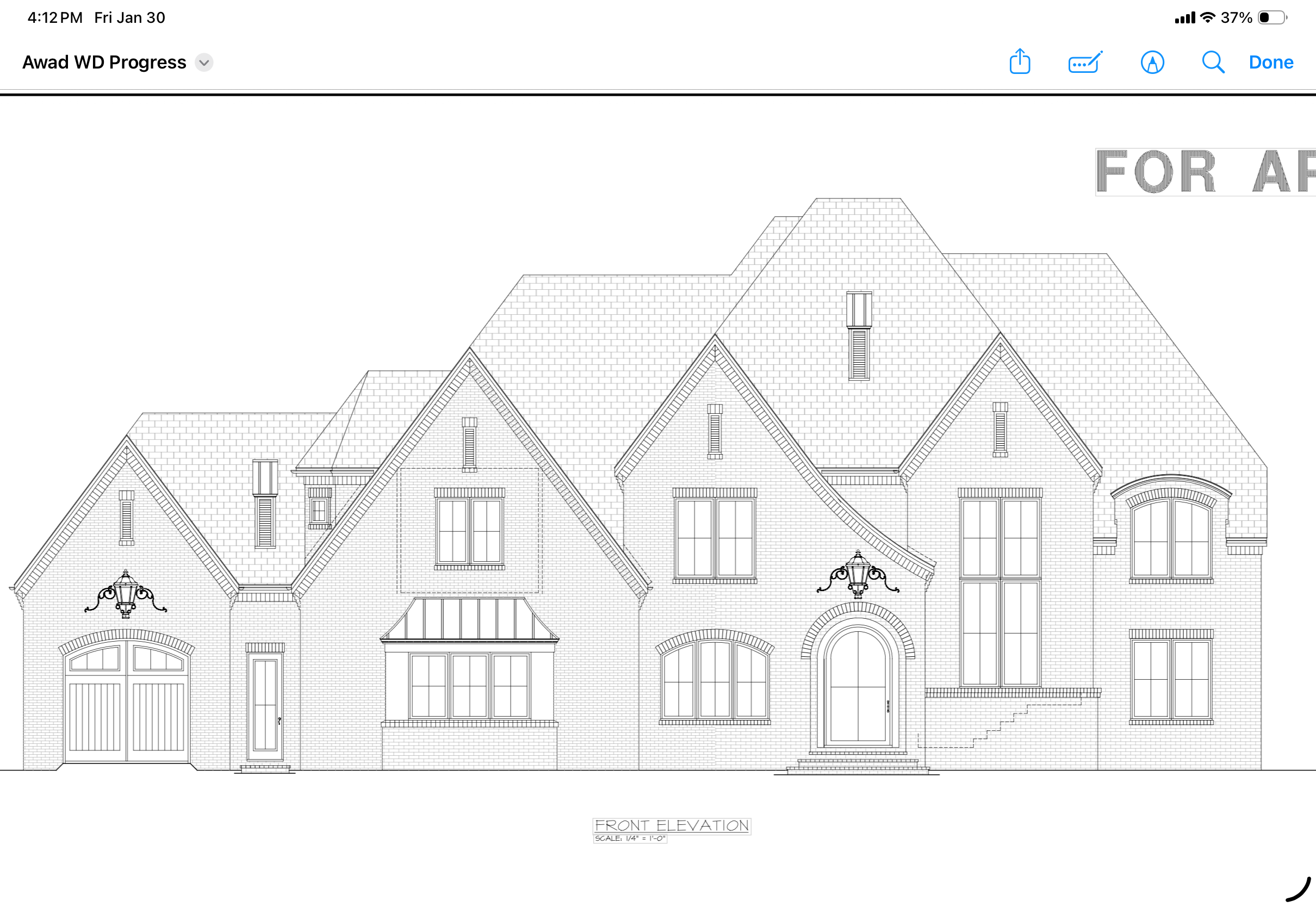 black roof windows and eaves light beige brick keep all details intact lush landscape in pastoral scene