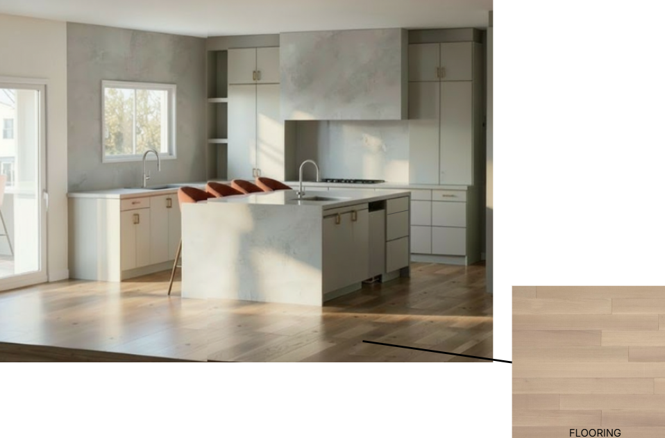 keep everything the exact same only change the flooring to the flooring shown on the bottom right corner have the flooring match the flooring shown and add the same hardware on every cabinet and draw