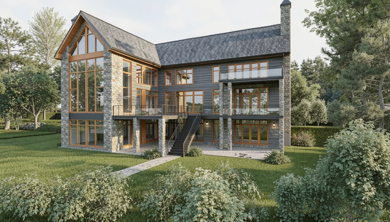 make a rendering standing from the kitchen looking into the great room