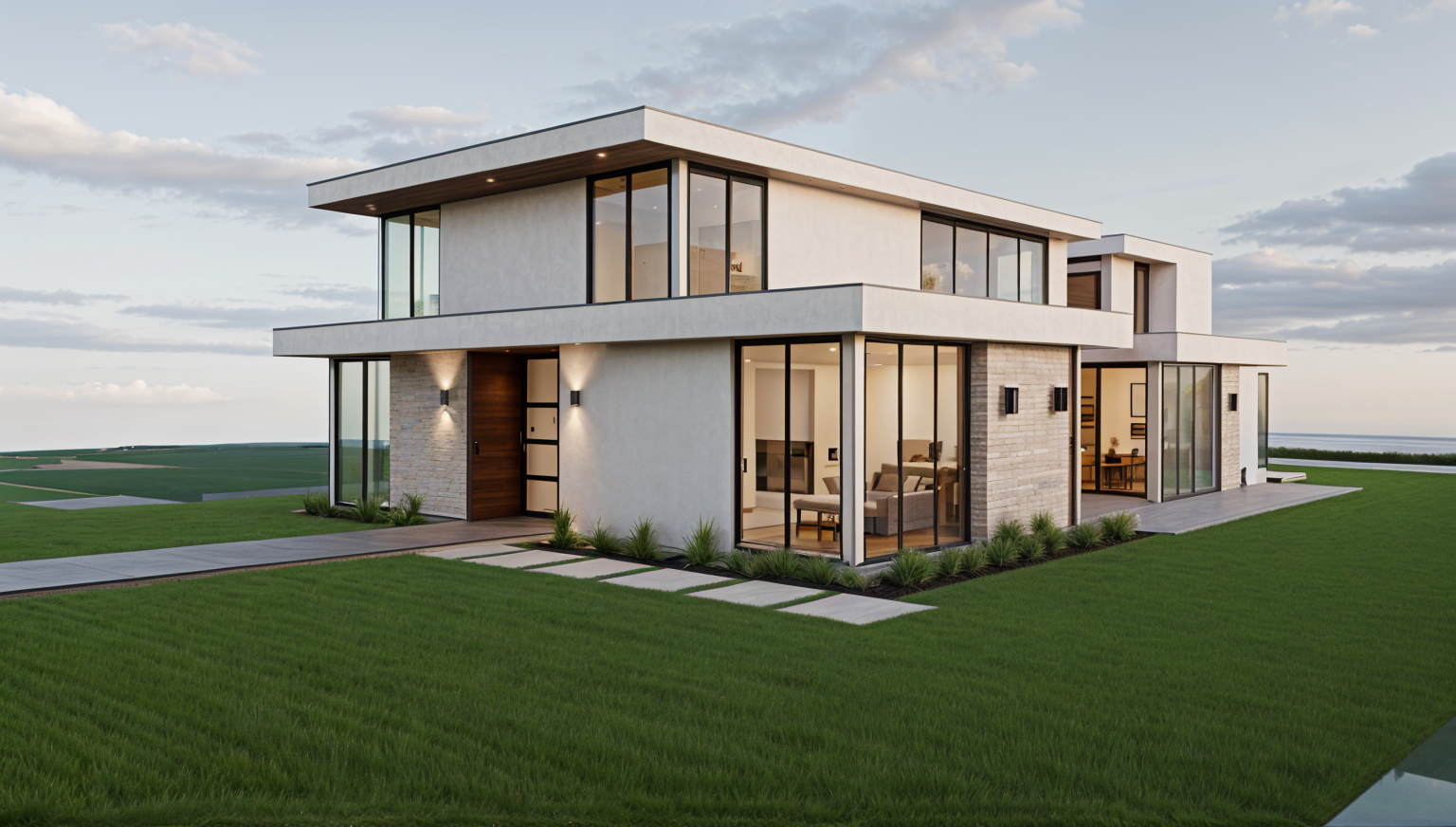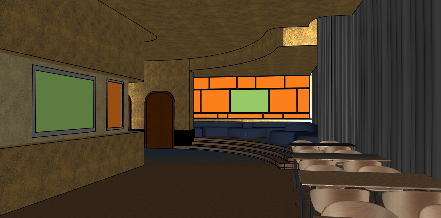 photorealistic render generated from the provided sketchup 3d image as a reference strictly respect the original geometry volumes proportions architecture and all furniture visible in the source image the project represents a classy high end vip lounge located inside a football stadium the space is fully enclosed entirely interior and has absolutely no exterior light source there is no natural light in this render there is no sunlight no daylight no sky light and no light coming from outside the space the environment must read as a pure interior space with zero exterior illumination or exterior influence of any kind all lighting must be 100 artificial any openings windows or colored shapes visible in the reference image must not emit light must not glow and must not suggest any exterior brightness or exterior environment artificial lighting must be warm soft and indirect it should enhance volumes and materials without overexposure the lighting must create a refined elegant high end lounge atmosphere the golden and warm feeling must come only from artificial lighting color temperature and light reflections never from material changes recoloring or exterior light do not recolor materials do not replace materials with gold metallic or golden textures all original materials visible in the sketchup image must be preserved the golden ambiance must be subtle and atmospheric resulting only from warm artificial light interacting with the existing materials strictly preserve the original material colors color tones coming from the sketchup image textures must be interpreted in a realistic high quality premium way while keeping the exact original colors and material identities unchanged fully respect the color coding system present in the reference image all furniture visible in the sketchup image must be kept exactly as is no furniture decorative objects lighting fixtures screens or architectural elements may be added removed or modified except where explicitly stated below behind the bar on the main column visible in the reference image bottles must be placed on the existing shelves these bottles must be realistic bar bottles glass bottles premium spirits neatly arranged proportional and consistent with a high end lounge atmosphere bottles must appear only on the shelves of the main column behind the bar no bottles may be added elsewhere in the space people must be present in the scene they represent vip guests in a high end lounge well dressed elegant classy and discreet attire should be refined and upscale tailored suits elegant dresses smart casual luxury their posture and behavior must be calm and relaxed standing sitting talking quietly holding a drink no exaggerated poses no crowding no casual or sporty clothing people must be realistically scaled naturally integrated into the space and must not block key architectural elements or focal points color coded areas are strict functional placeholders and must be interpreted exactly as follows with no alternative interpretation any orange colored area represents a mirror including rectangular shapes curved shapes concave forms or any other geometry all orange areas must be replaced exclusively by realistic mirrors with reflections consistent only with artificial interior lighting any green colored area represents a television screen and must be replaced exclusively by a realistic tv screen displaying football related content live football match broadcast replays football visuals stadium atmosphere green areas must clearly read as television screens and nothing else archsynth must take no artistic freedom beyond what is explicitly requested do not add anything that is not clearly specified in this prompt or visible in the original sketchup image no implied objects no additional elements beyond what is described final render must be clean realistic elegant strictly controlled and clearly convey the feeling of a premium classy vip lounge with a warm golden atmosphere created exclusively by artificial lighting in a fully interior space