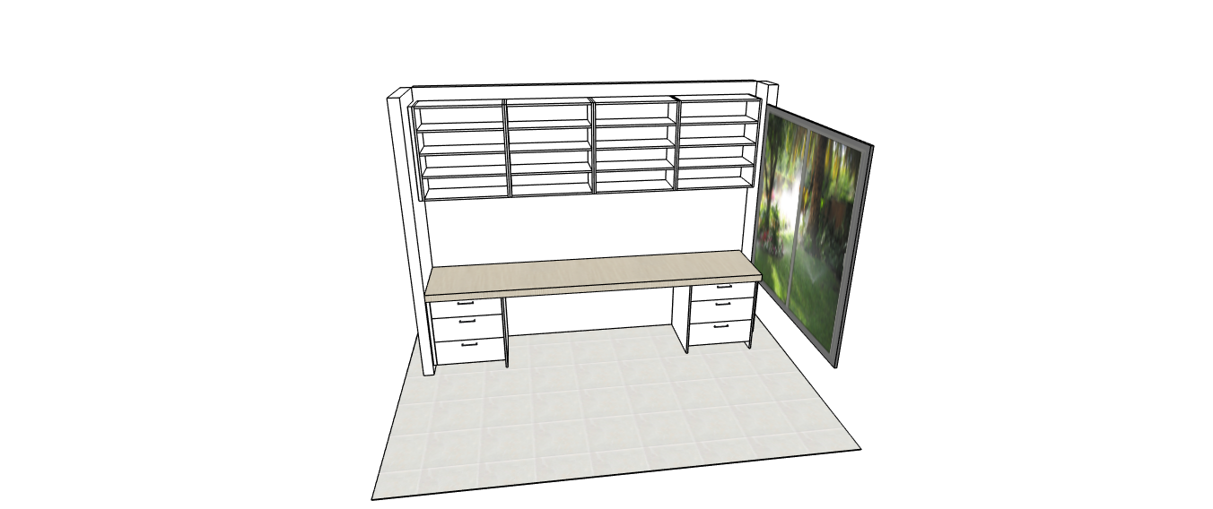 this is a home office benchtop the be thick cabinets to be black woodgrain put some evening sun
