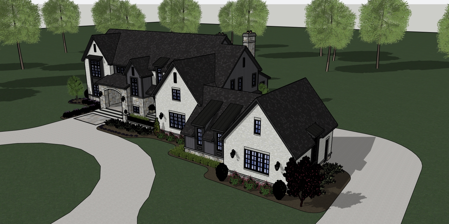 partly cloudy sky deciduous trees in background charcoal trim black windows off white brick fond du lac stone