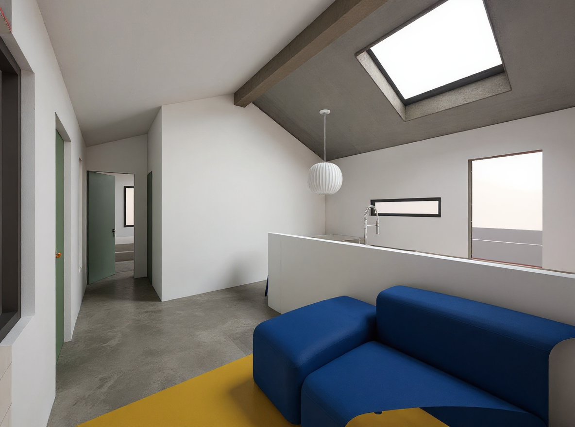 floors are concrete matte finish add daylight filling space from windows blend with ambient light