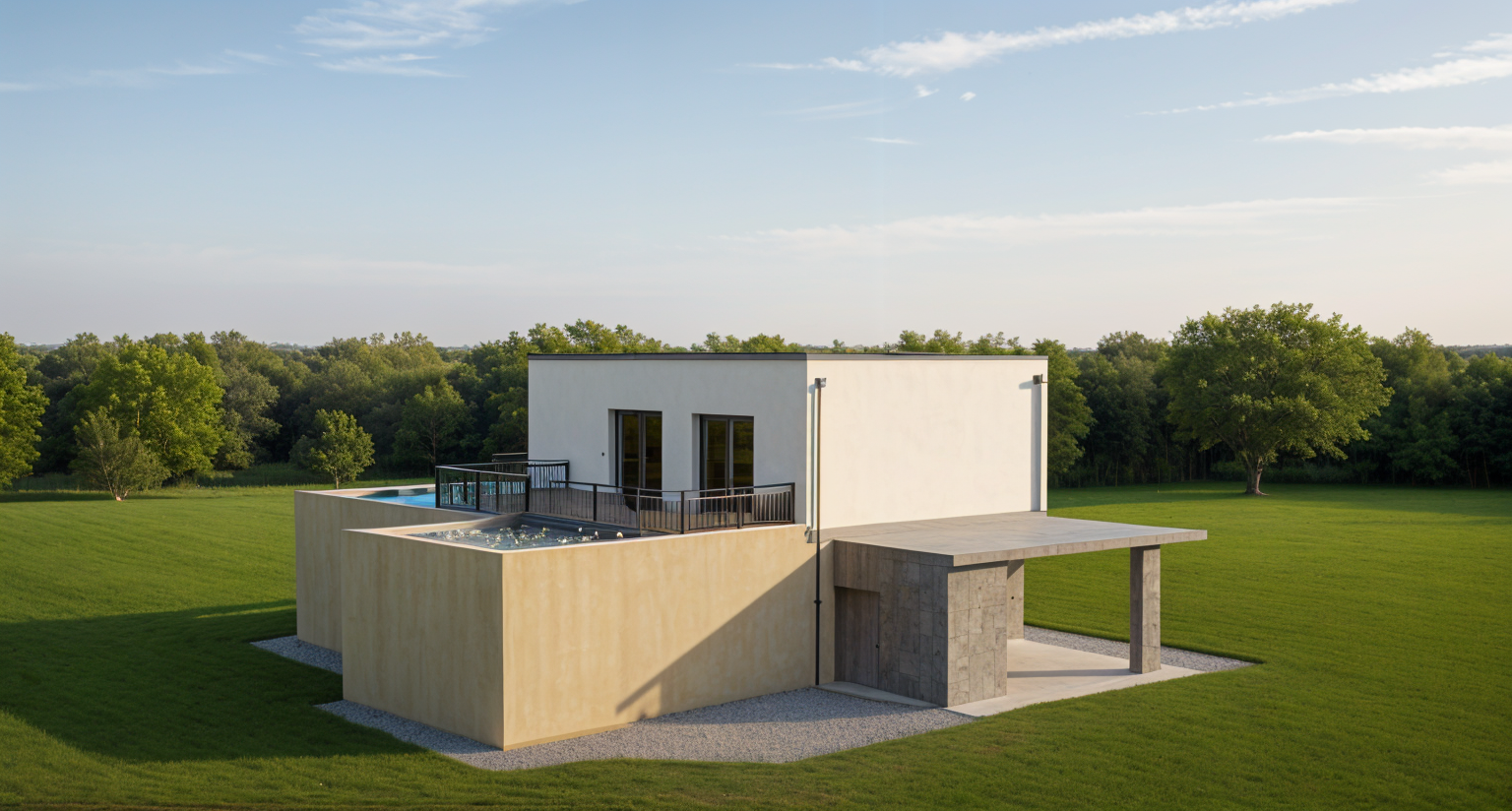 a manicured lawn low maintenance shrubs native plants exposed concrete path