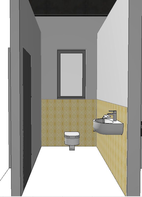 tiles half hight music tiles matte anthracite floor is concrete matte walls white ceiling wood with wooden beams window anthracite