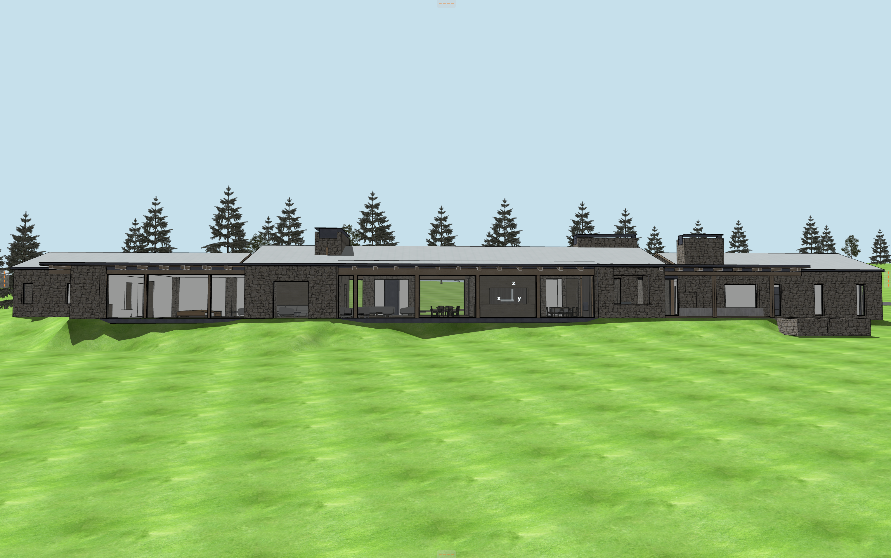 grassy idaho landscape rolling hills natural grasses and pine trees corten roof enhanced lighting