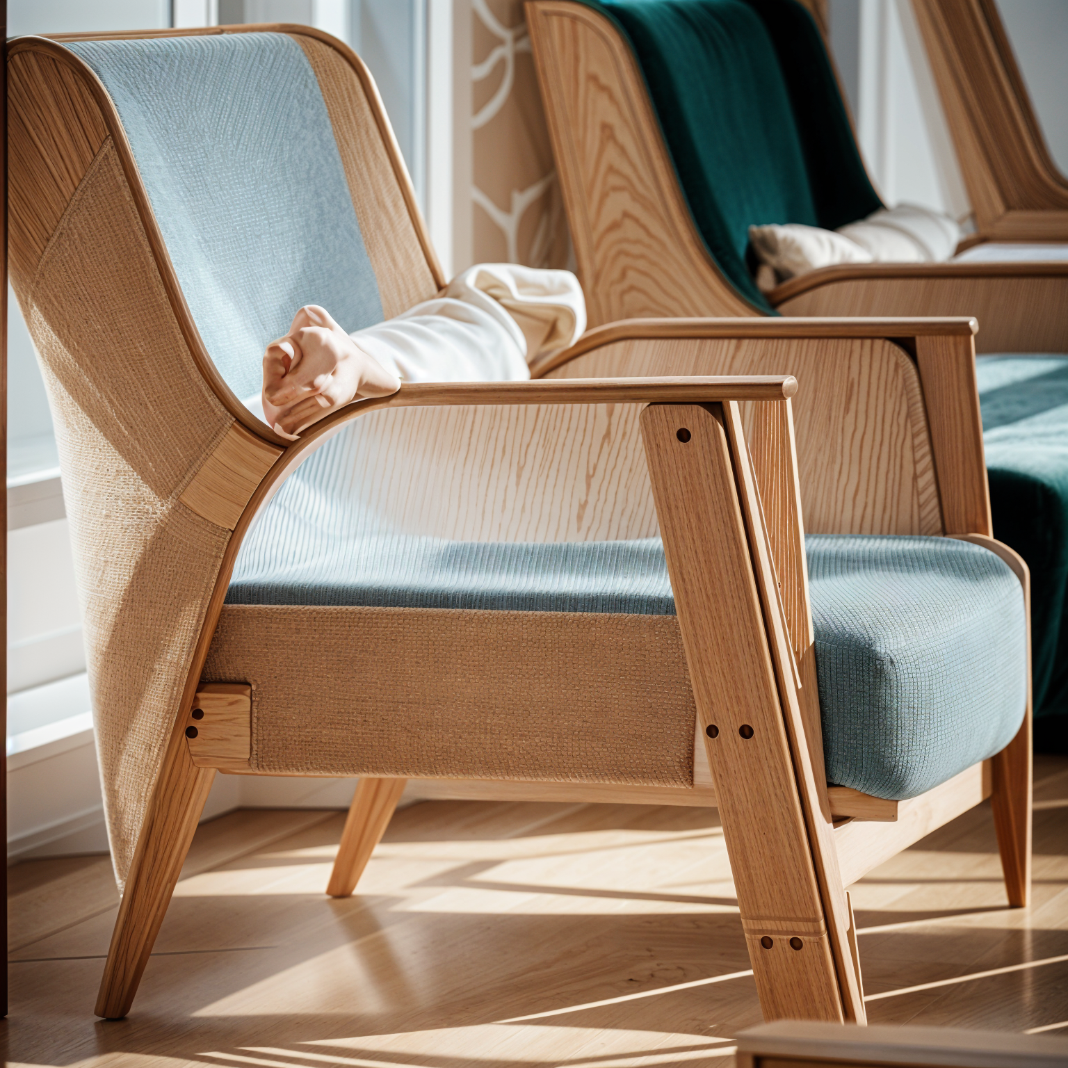 modernist perspective shot weaving inspired back chair wooden legs finish upholstered seat and back architecture