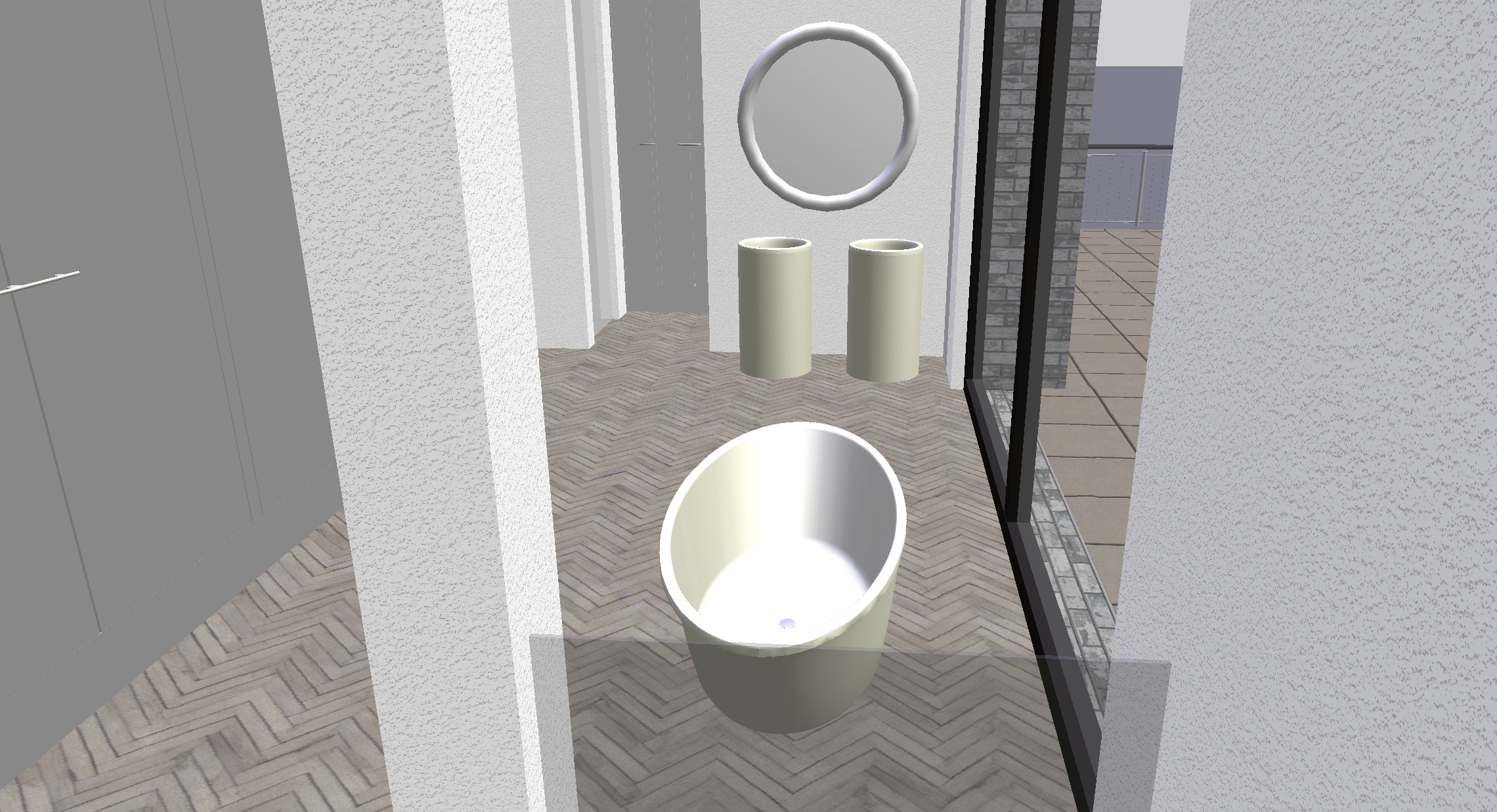 genau dieses rendering berarbeiten fotorealistisches innenraum foto exakt dieselbe perspektive und kameraposition wie das hochgeladene referenzbild 100 identische raumgeometrie exakt gleiche m belanordnung exakt gleiche verlegeart und richtung von parket wie vorlage exakt identische fensterpositionen mit gleichem ausblick durch die fenster weiches nat rliches tageslicht leicht schr g einfallende sonne durch die grossen fenster geschlossene r ume k nstlich ausleuchten sanfte realistische schatten blickrichtung ist nach osten sonnenlicht kommt von s den realistische materialien echte holztexturen stoff mit leichten gebrauchsspuren hochwertige oberfl chenreflexionen kleine gr npflanzen lavabo aus marmor collemandina grigio in braungrau dunkel dahinter je eine vola standarmatur fs2 edelstahl keine ablagefl chen badewanne austauschen mit modell reflexlight von antonio lupi in klarglas braungrau dunkel mit standarmatur fs1 edelstahl auf fensterseite links hinten bei den lavabos hat es einen schrank f r badet cher schrankfronten alle grauglas gl nzend ohne griffe parket ruhig und hellgrau vollkommen rahmenloser und hinterleuchteter spiegel rechts hinter den lavabos ist die nicht sichtbare dusche hell ausgeleuchtet alle sichtbaren w nde sind sichtbeton graues badetuch l ssig ber badewanne werfen leichter tagesvorhang in graubeige auf der rechten seite des fensters runde filigrane schwarze einbauspots vor der fensterfront sehr moderner minimalistischer look nat rliche farbwiedergabe golden hour feeling aussen stadtleben in z rich wir sind im 3 obergeschoss das bild muss wie eine professionelle fotografie aussehen es soll ein echtes und reales foto sein canon eos r5 35 mm festbrennweite f 2 8 hyperrealistisch dslr qualit t raw aufnahme 8k aufl sung extrem scharf perfekte tiefensch rfe professionelle architekturfotografie