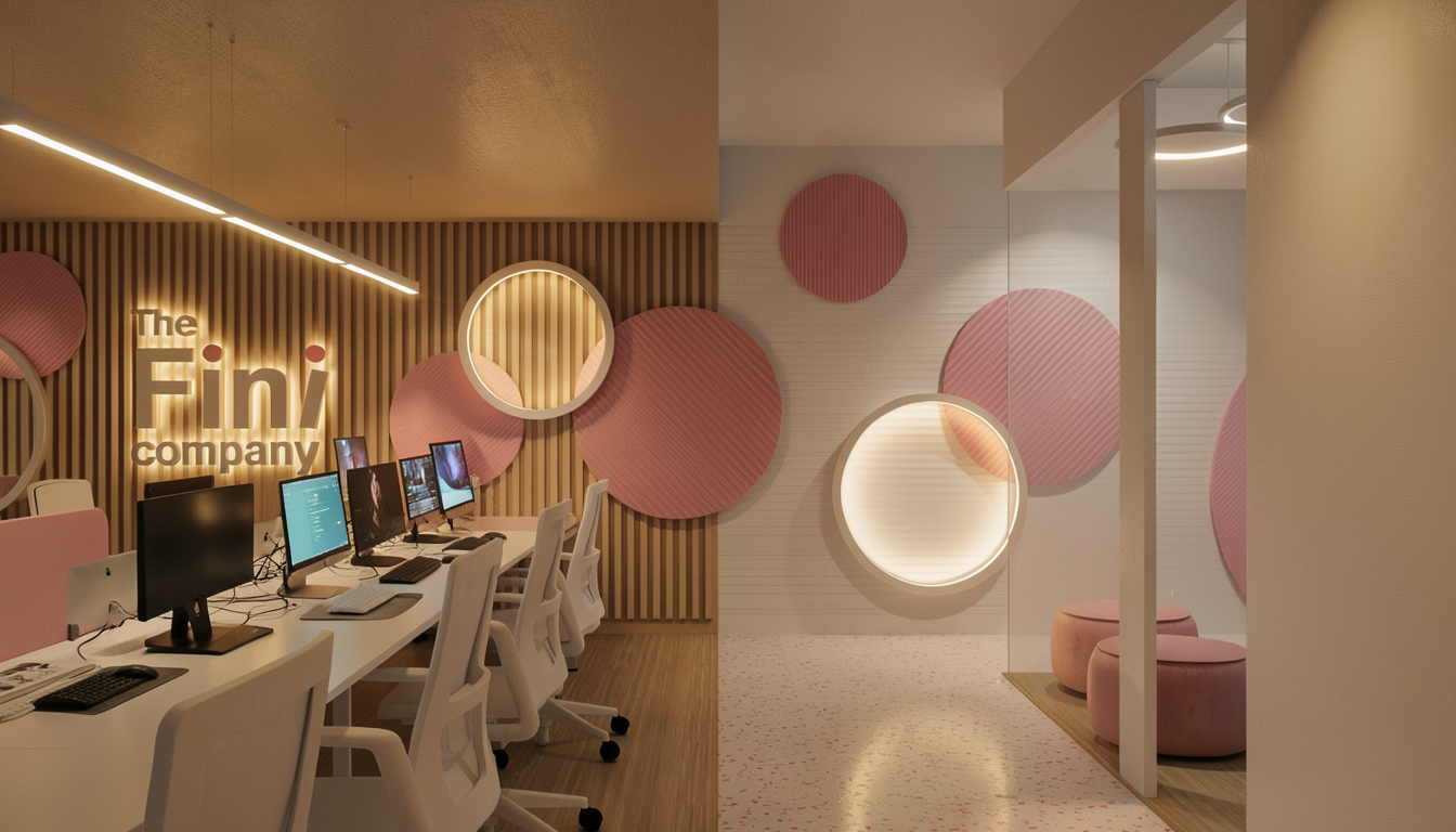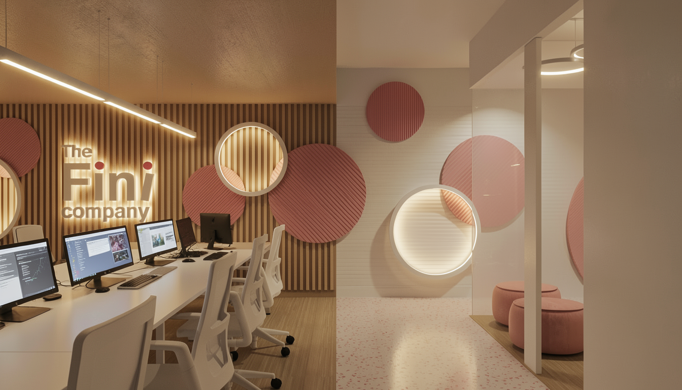make a realistic editorial image using the reference as base include computers over the tables and poetic lighting not too much dramatic