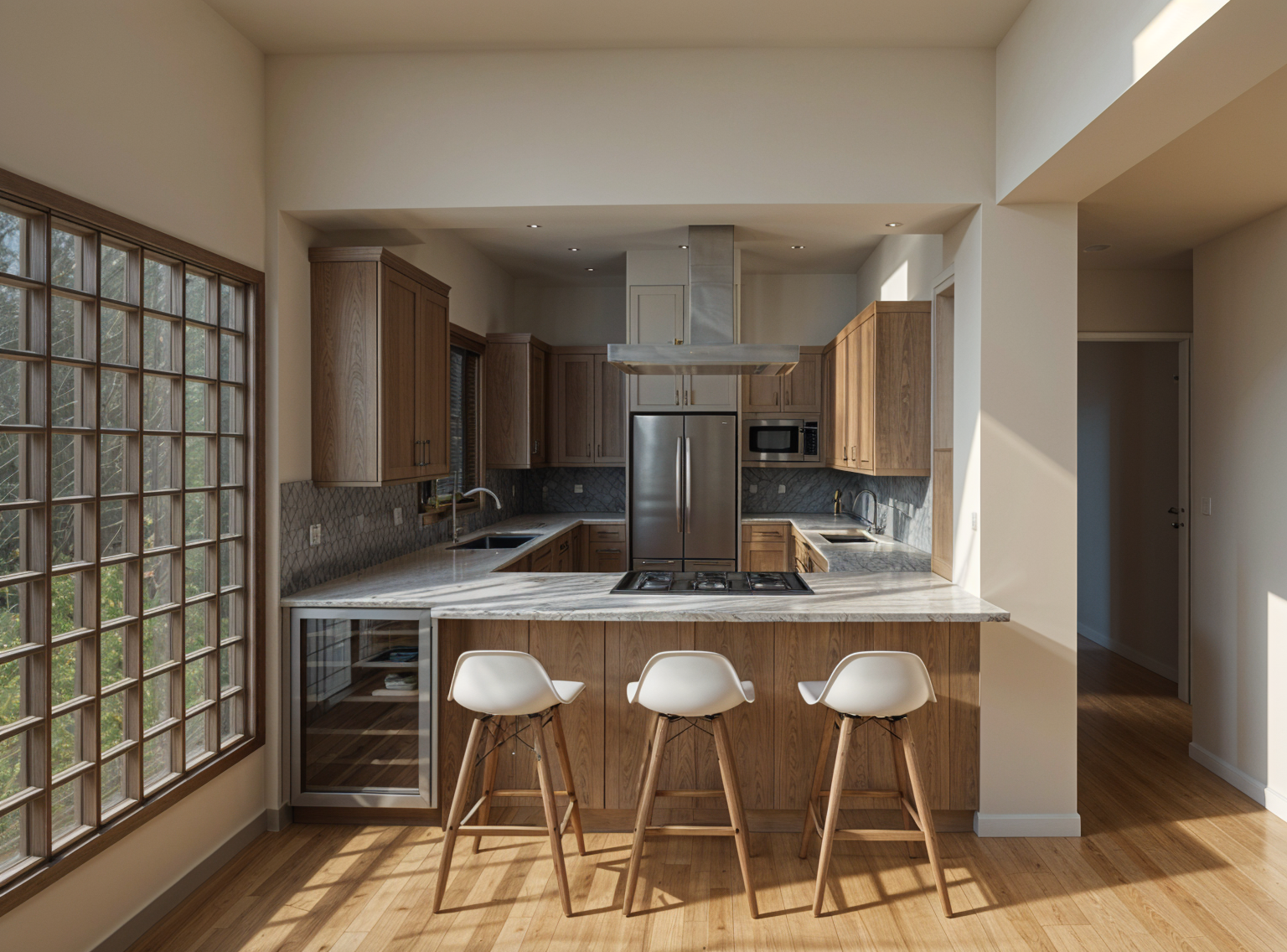 le corbusier exterior shot photorealistic modern and elegant and warm architecture