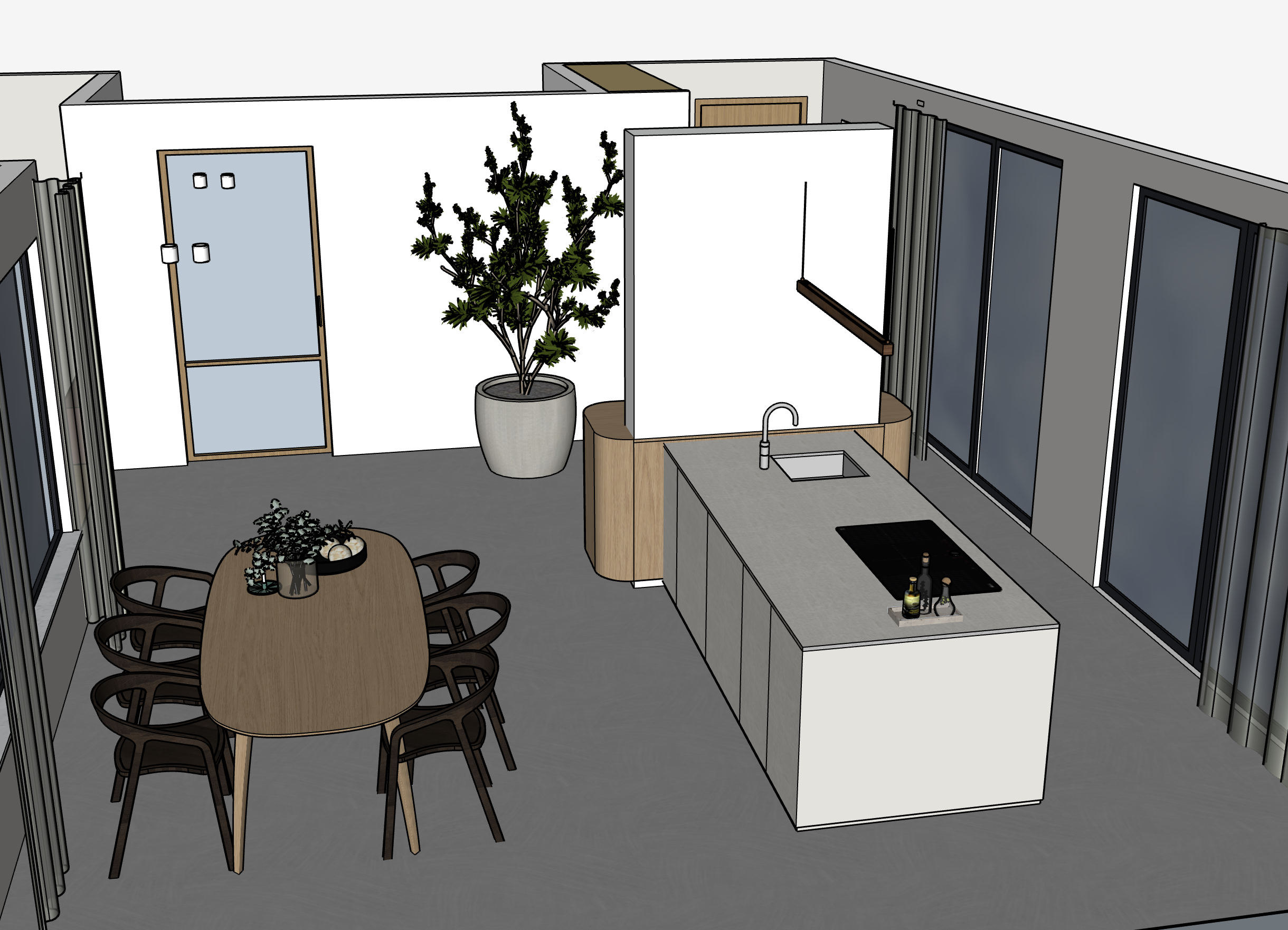 please make the ceiling white coloured the floor is grey concrete sunny weather