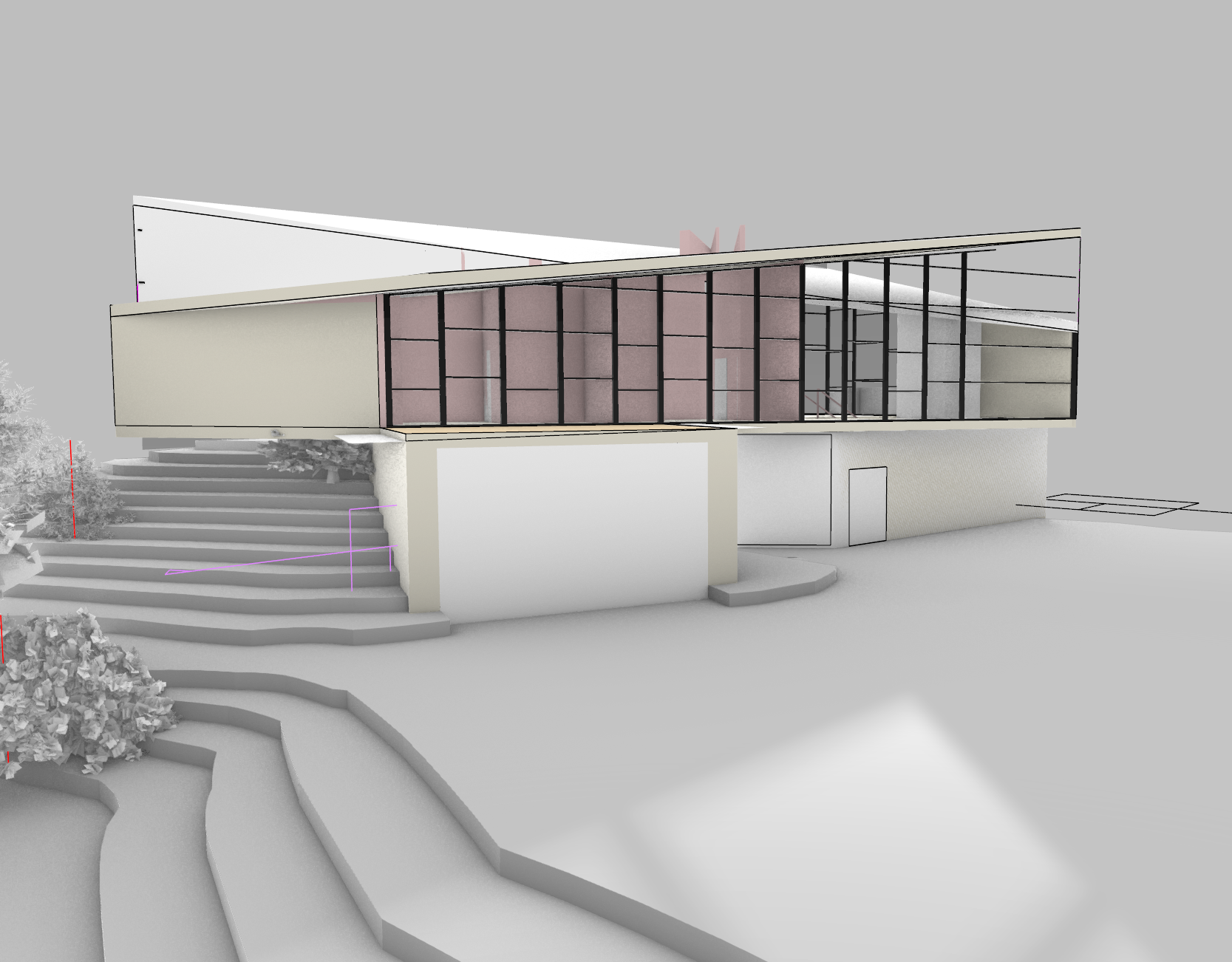 architectural watercolor rendering of a small contemporary research station perched on a rocky cliff structure made of warm wood black steel and glass precise and realistic architectural detailing top floor cantilevered over stone terrain surrounded by mountain pines and mist below rendered with crisp building geometry and realistic materials background and edges dissolve into loose watercolor washes and white paper edges not full bleed with soft unfinished fade around the image visible pencil and ink linework with light technical annotations artistic yet grounded balance of precision and painterly abstraction calm morning light concept architectural visualization style