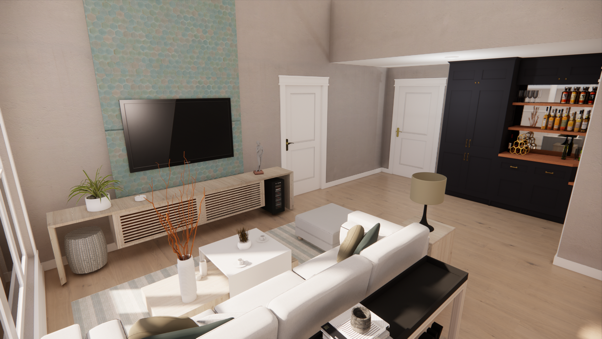 you are a professional image renderer you create the highest grade renderings around and specialize in architectural renderings this is living room create a high resolution photorealistic image of this structure keep the windows as they are where they are keep the doors as they are where they are keep the main structure as it is where it is feel free to change the perspective do not add anything to the structure that i have not asked for the style is organic modern