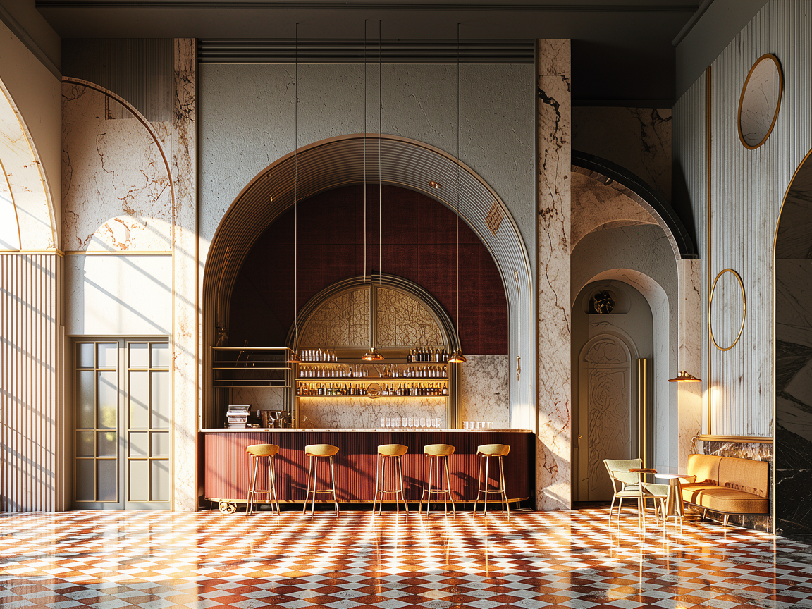 walls and ceiling are warm off white limewash vanity stone is soft muted light emerald quartzite vanity cabinetry is a soft muted mid tone timber not dark not light bed head wall is a freeform stone cladding glass door is bronze frame with flemished textured glass insert golden hour moody turn bedside lamps and wall sconces on bedside lamps are rice paper wall sconces are an amber toned murano glass