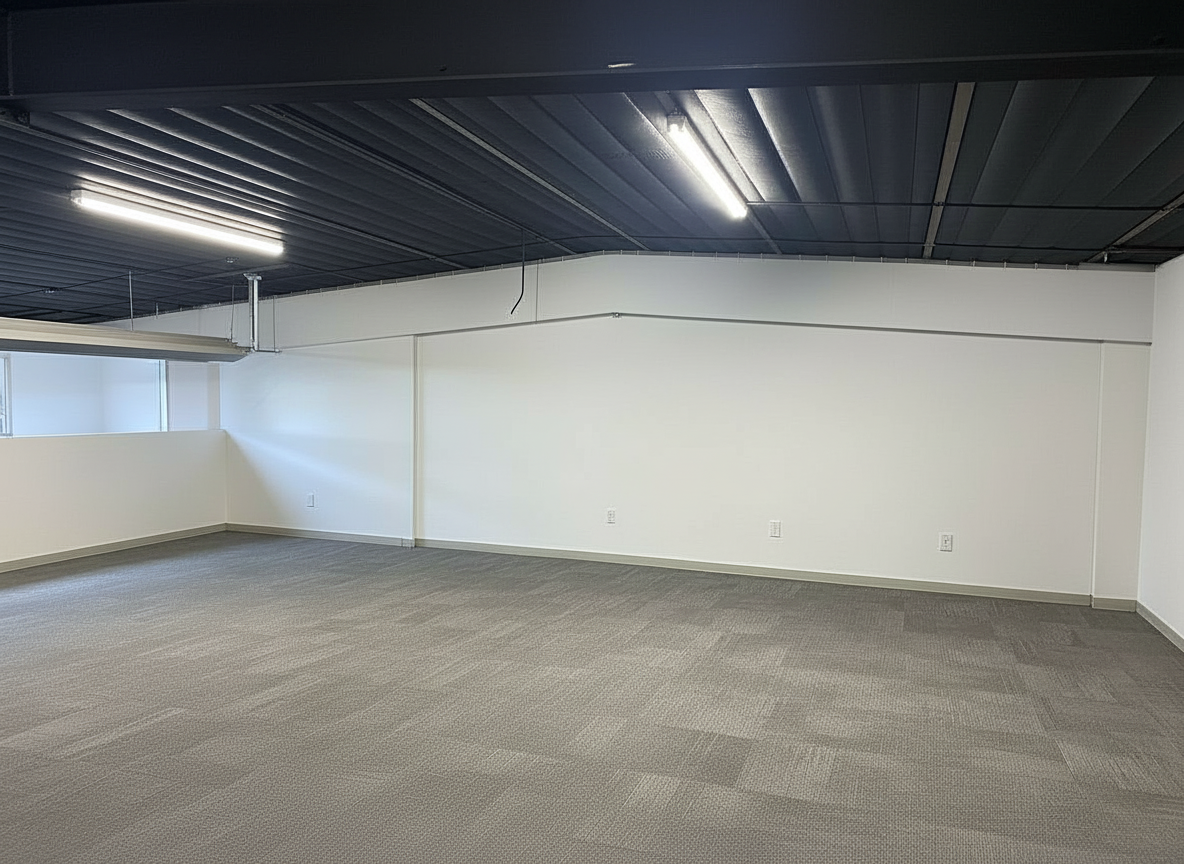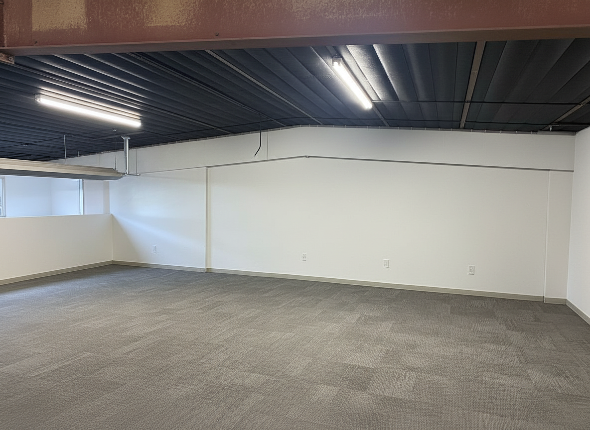 change the wall paint color to a clean soft white replace the light fixtures with modern clean office lights keep everything else unchanged