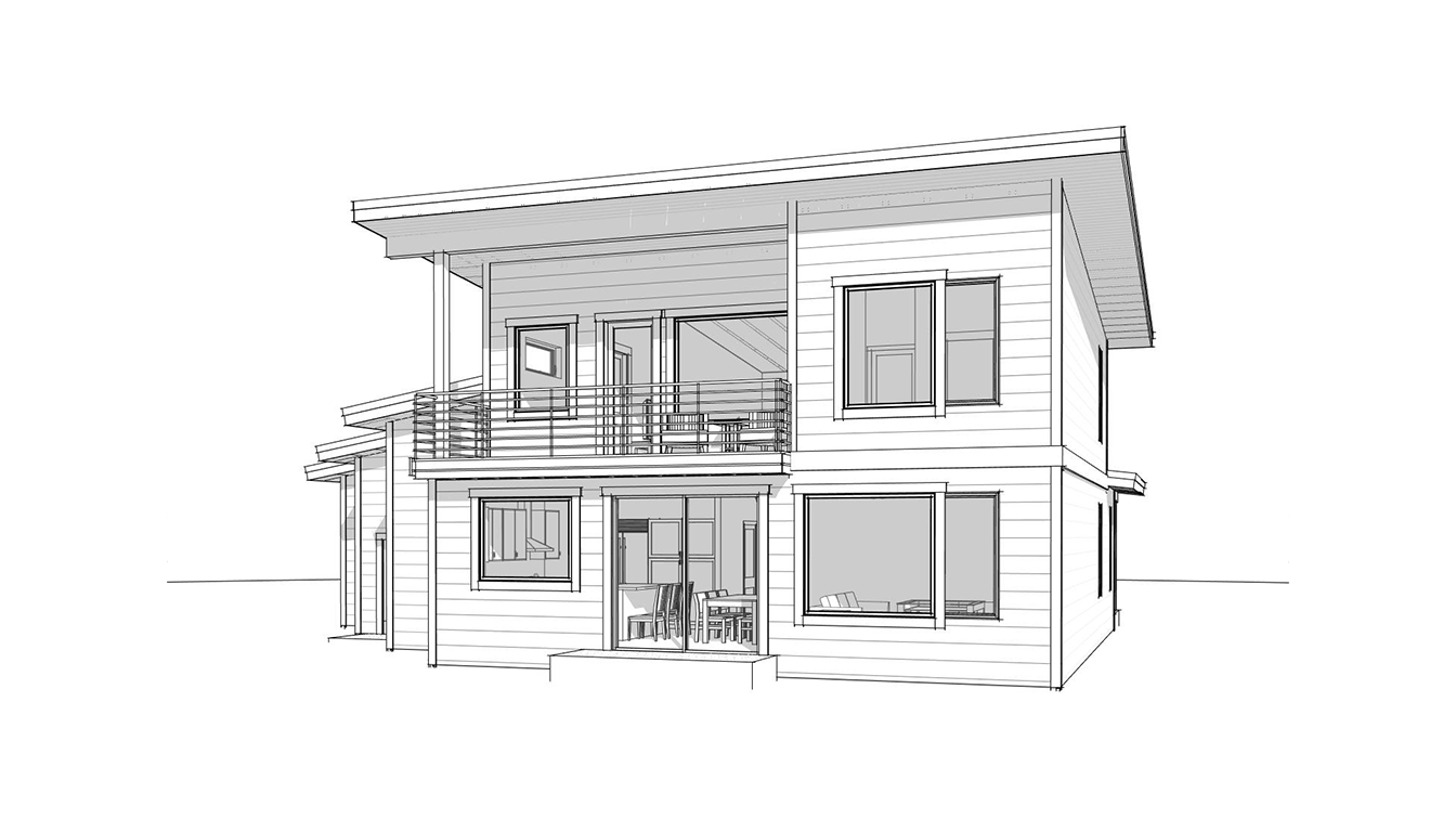 clean modern architectural exterior rendered in cinematic bright mid day lighting concrete driveway leading up to the home modern architectural style select grade horizontal cedar siding beautifully manicured landscape around structure with hedges and gardens black standing seam metal roof visible prominent cinematic lakefront in the background with mountains in the distance high fidelity photorealistic visualization crisp shadow falloff refined facade geometry soft atmospheric depth premium architectural photography mood ultra clean composition and materials vibrant sunset warm wood trusses