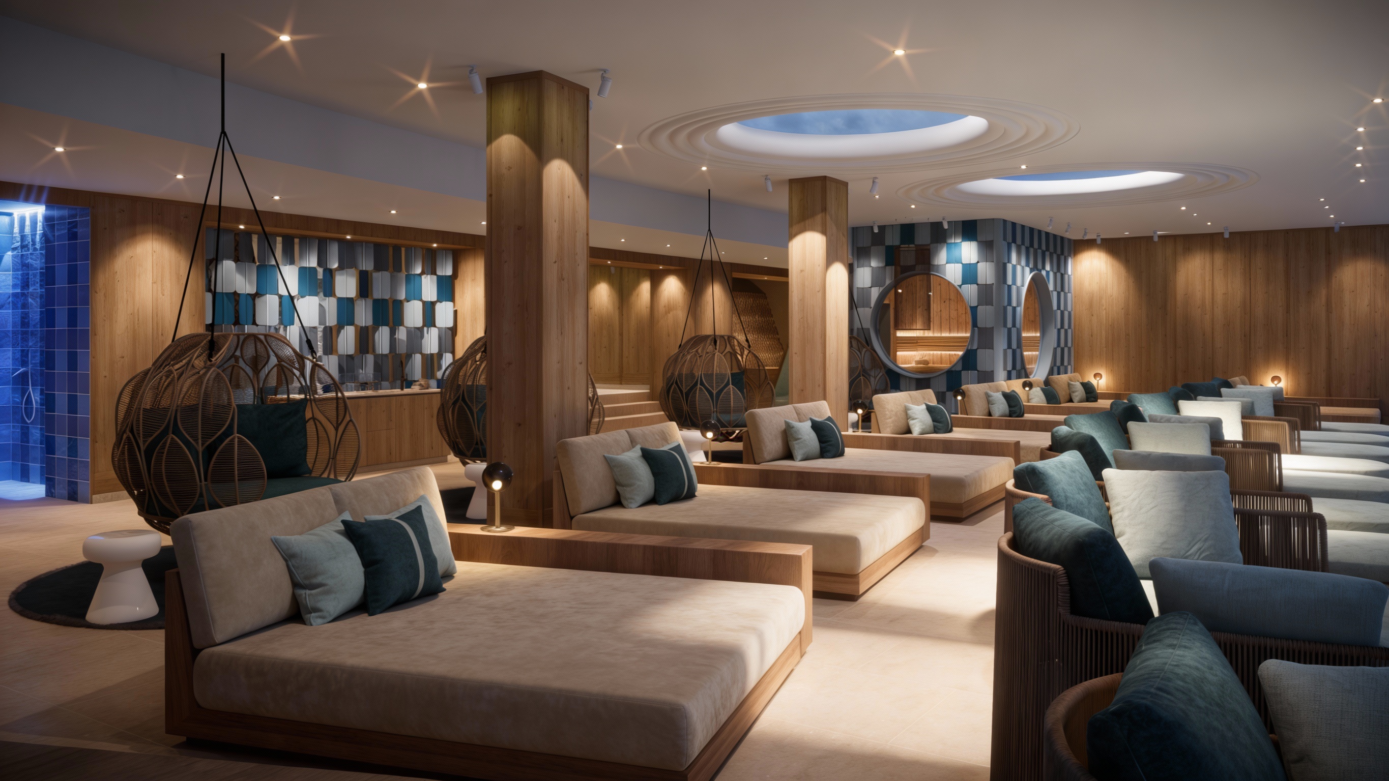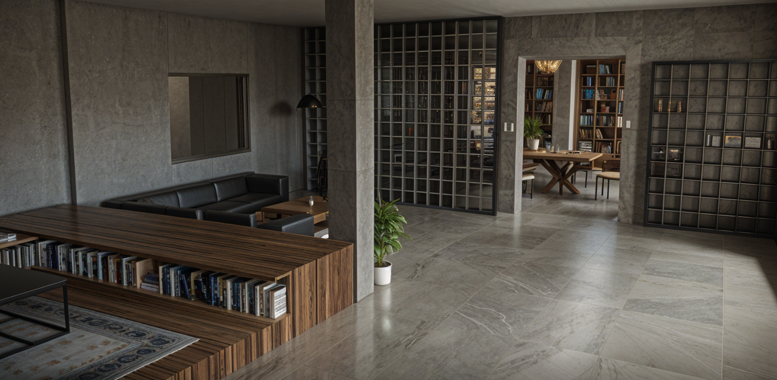 quiero que el rodapie sea gris y quiero que la iluminacion sea calida no tan calida entre la actual y blanca quiero que la iluminacion sea un poco mas calida con los mismos criterios esta nueva imagen el cuadrado del fondo es un espejo la iluminacion un poco mas blanca al fondo hay espejo el cuadrado del fondo es un espejo