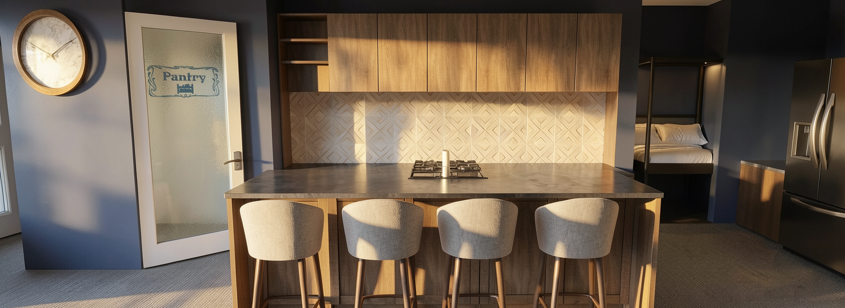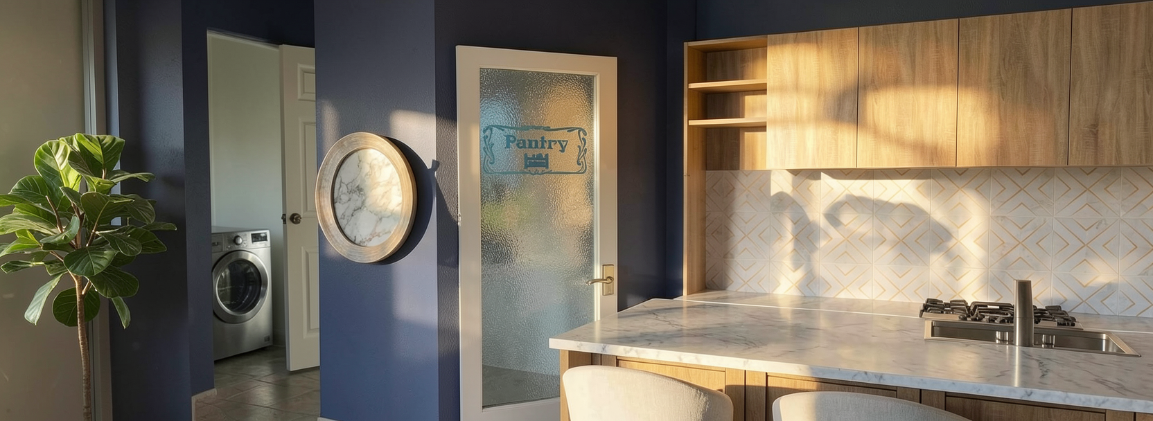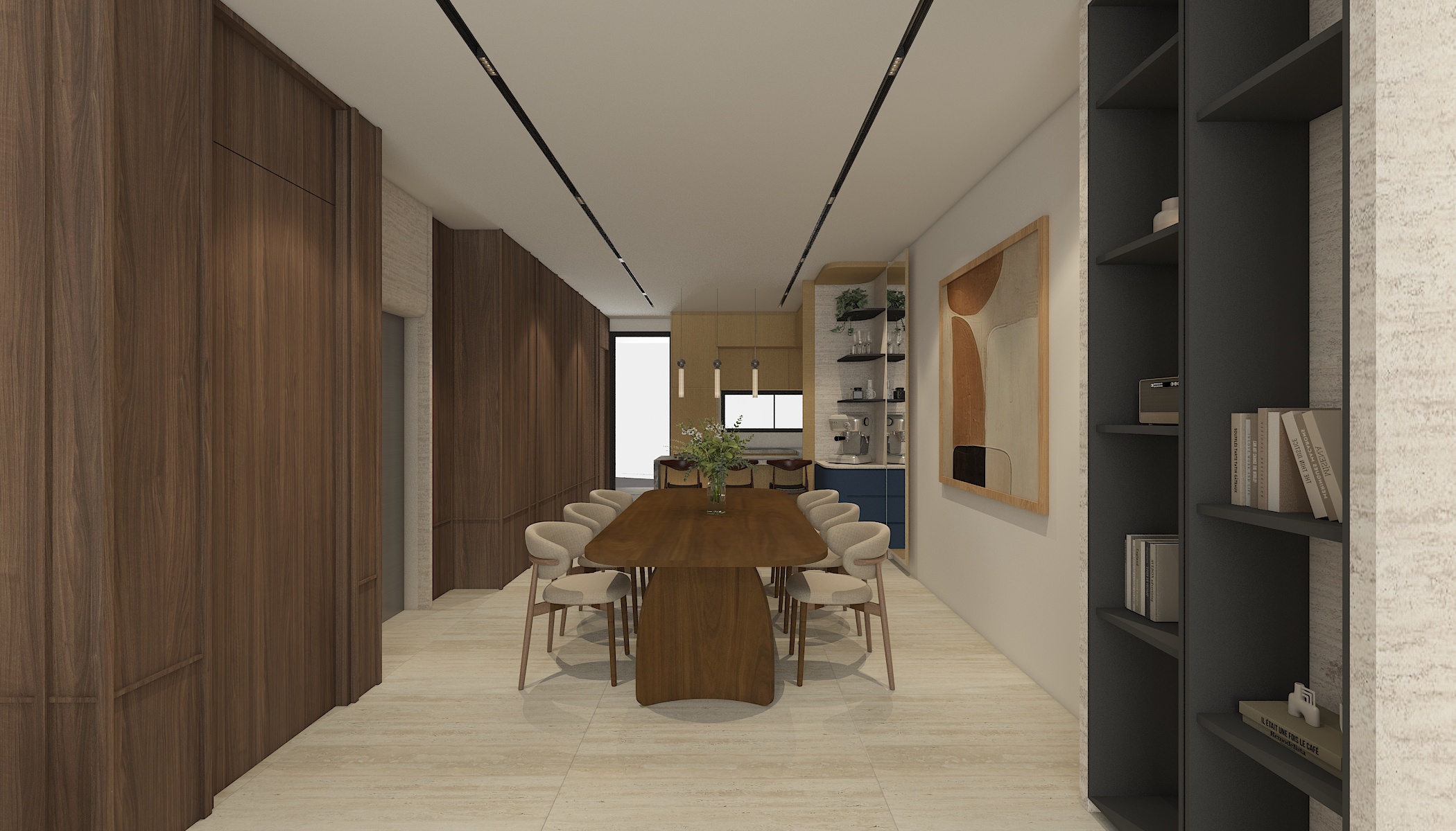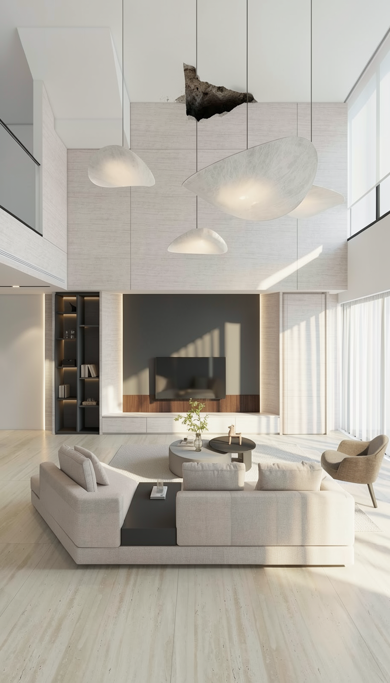 add cove light vertically at grey display cabinet add downlight at white ceiling