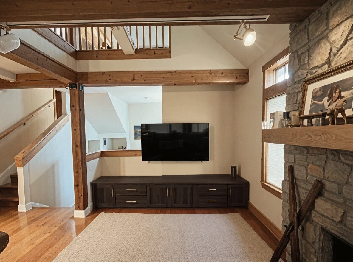 move the tv to the right add to small low back club chairs in a light brown finish