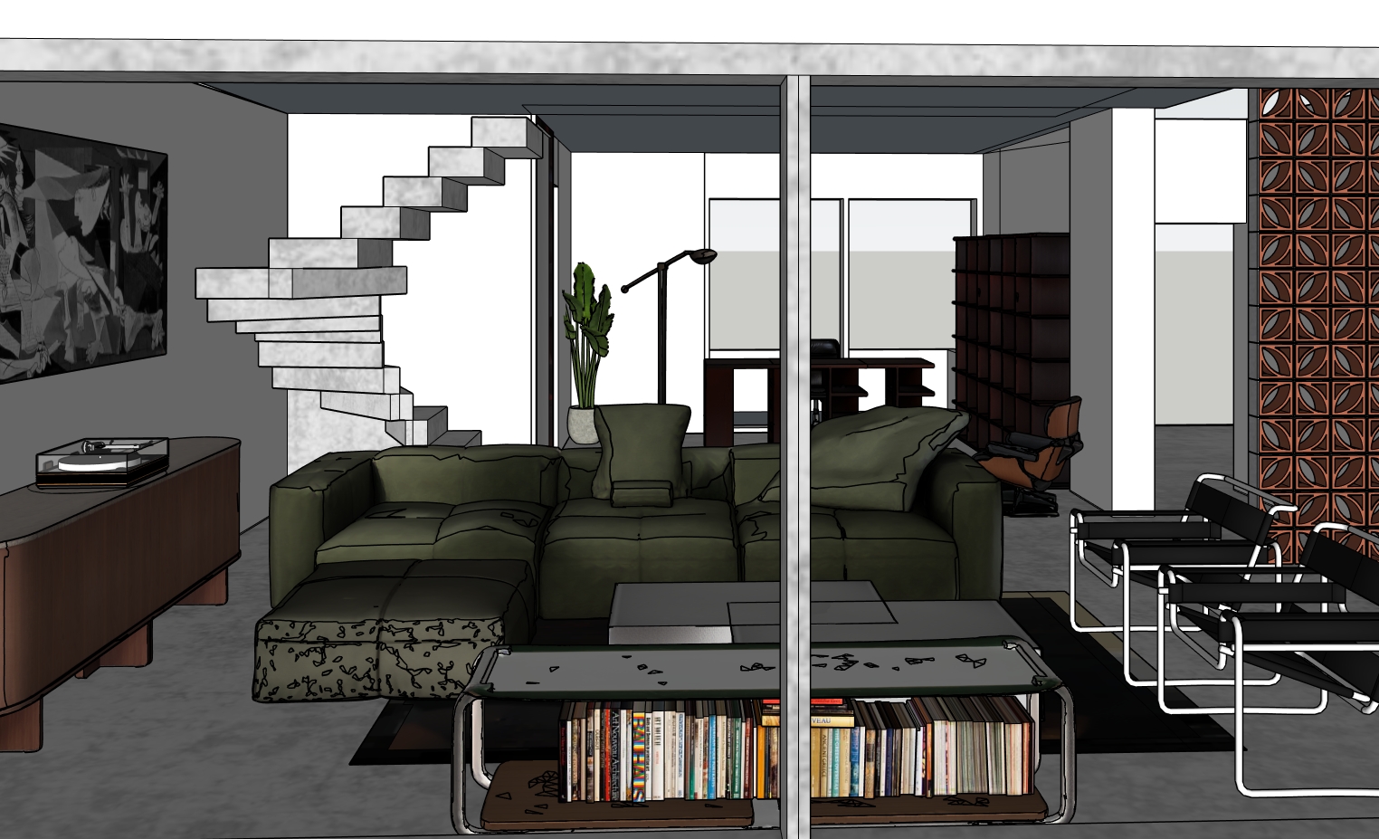 make it photo realistic with leather seatingh material and the coffeee table aluminum daylight