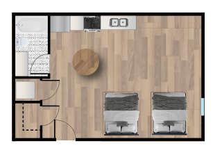 use this plan view of a room to create an interior efficiency apartment with kitchenette use colors commonly seen in a nice hotel architecture