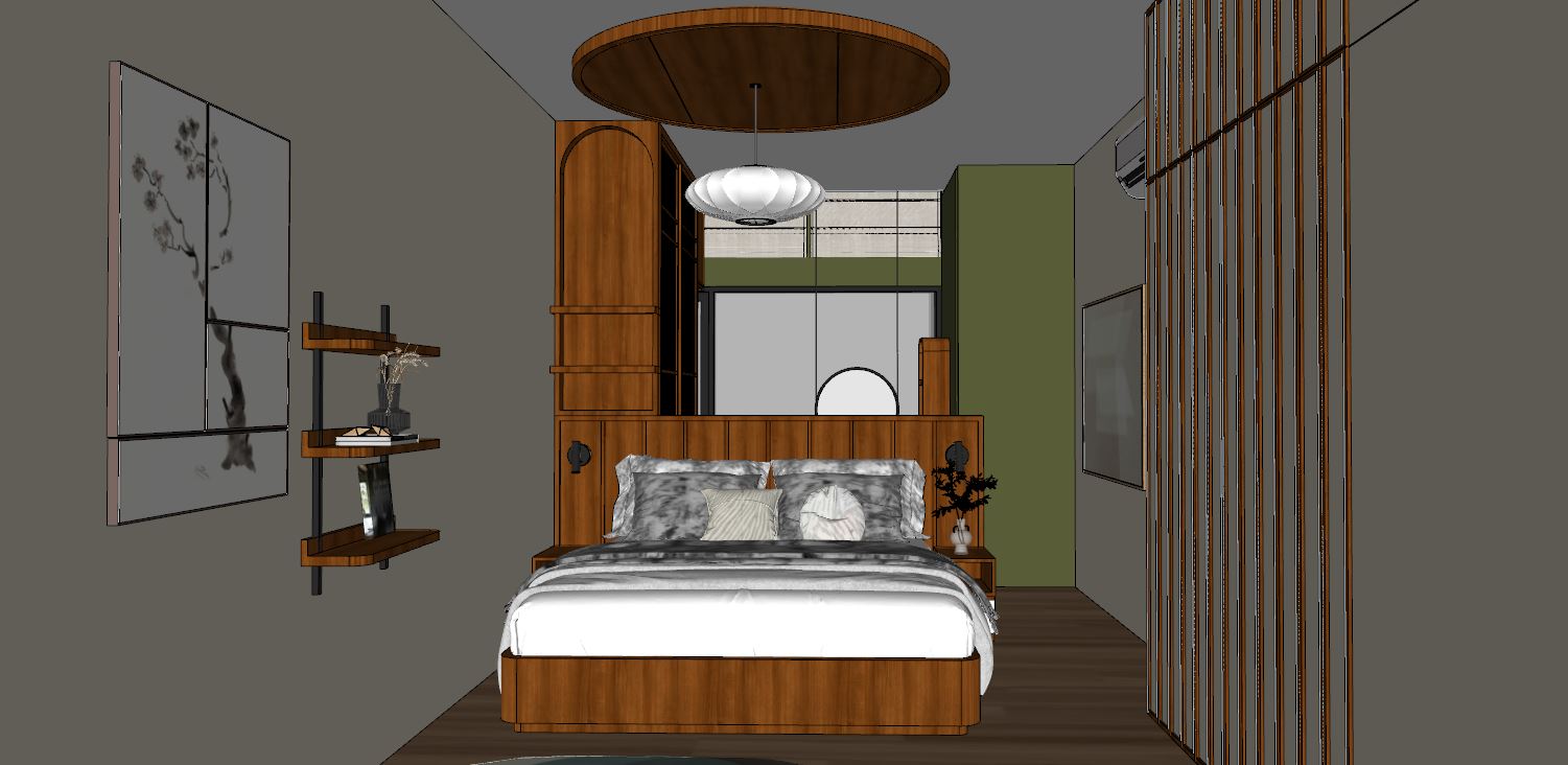 make it more modern mid century style brighter ambience 2 sliding wardrobe door with stright vertical jalousie window in the back of the bed