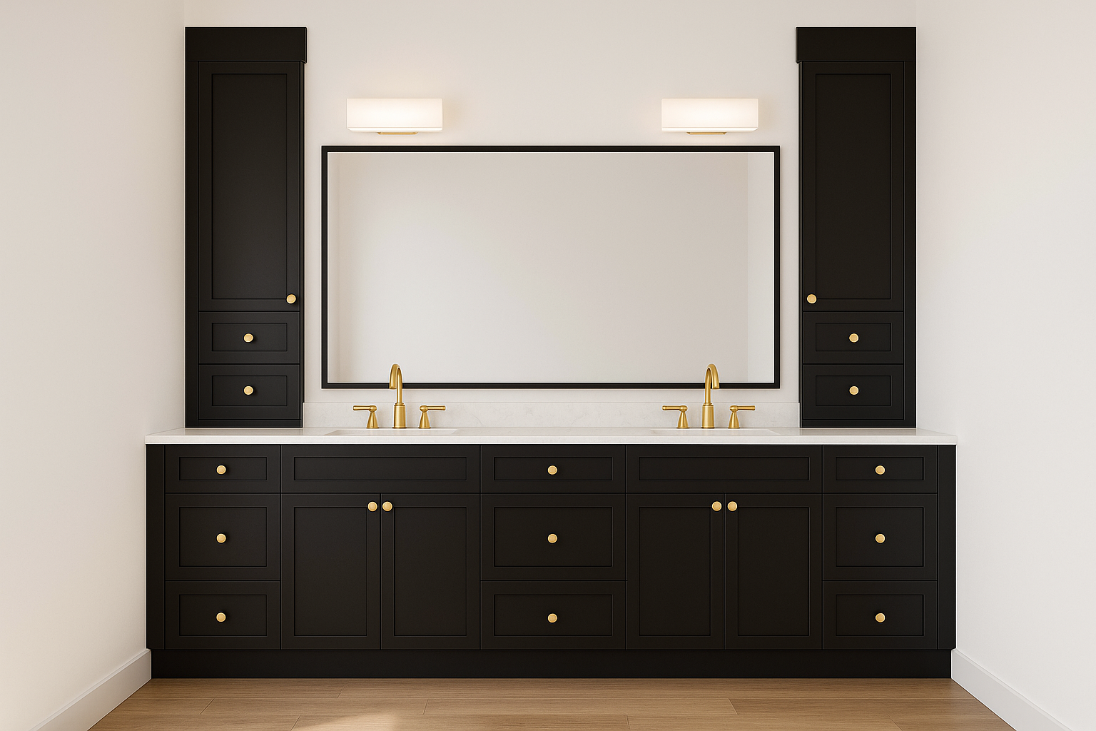 zoom out of this rendering creating a full view of this primary bathroom add a shower
