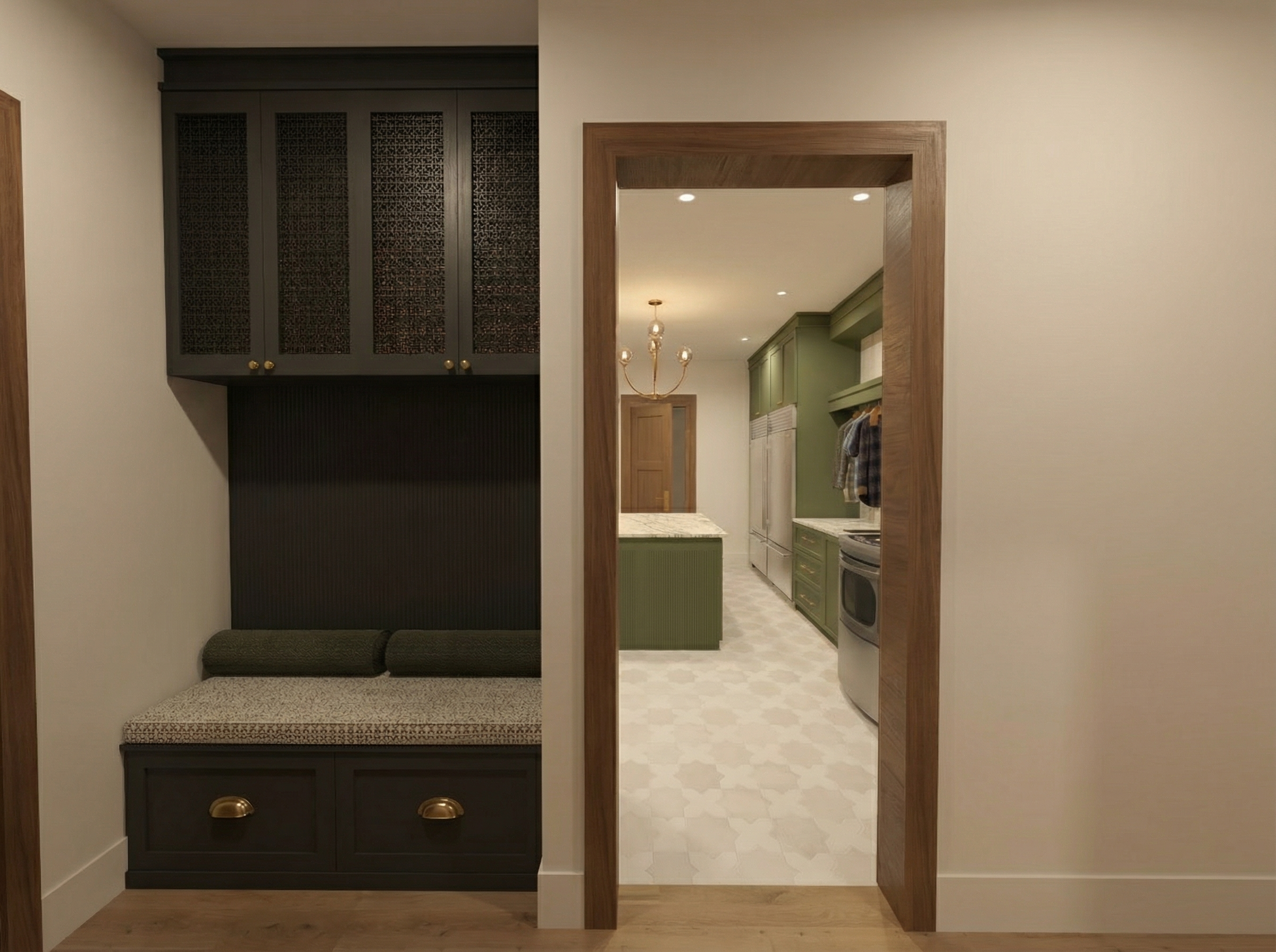 dark gray shingle roof white house board and batten on second floor stucco on first floor gray block stone at bottom of house gray metal roof over garage florida landscape gray paver driveway white frame windows