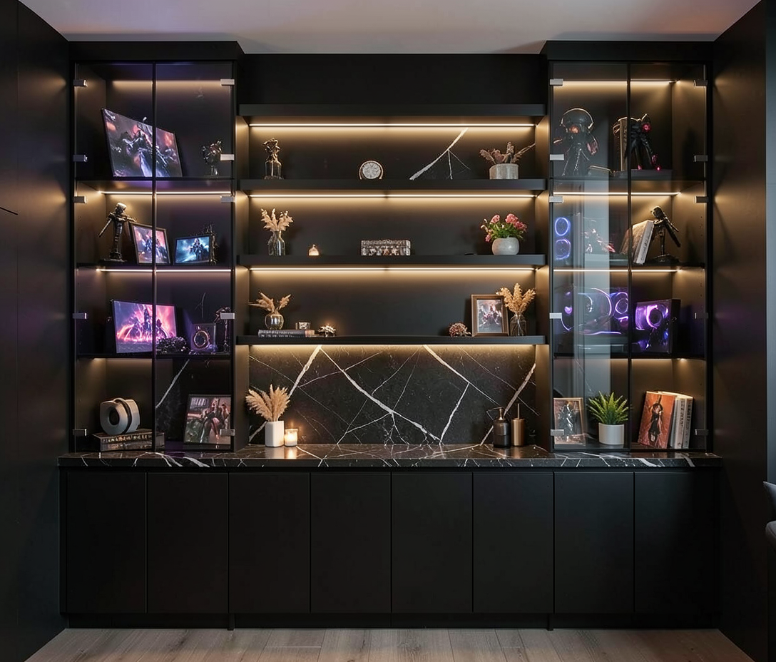 make cabinets white add leds make this likea gamer room