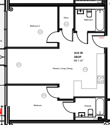 convert this floor plan into a realistic isometric 3d view of a full house show the space from an elevated angle with furniture walls and details visible make the bedrooms have carpet the lounge and kitchen area have wooden chevron flooring make the bathroom have bali green style metro tiles in a vertical fashion from halfway up the wall to the ceiling large format cream tiles below halfway and the floor with brushed brass taps and outlets use the same furniture as shows on the plan do not change the orientation of the floorplan