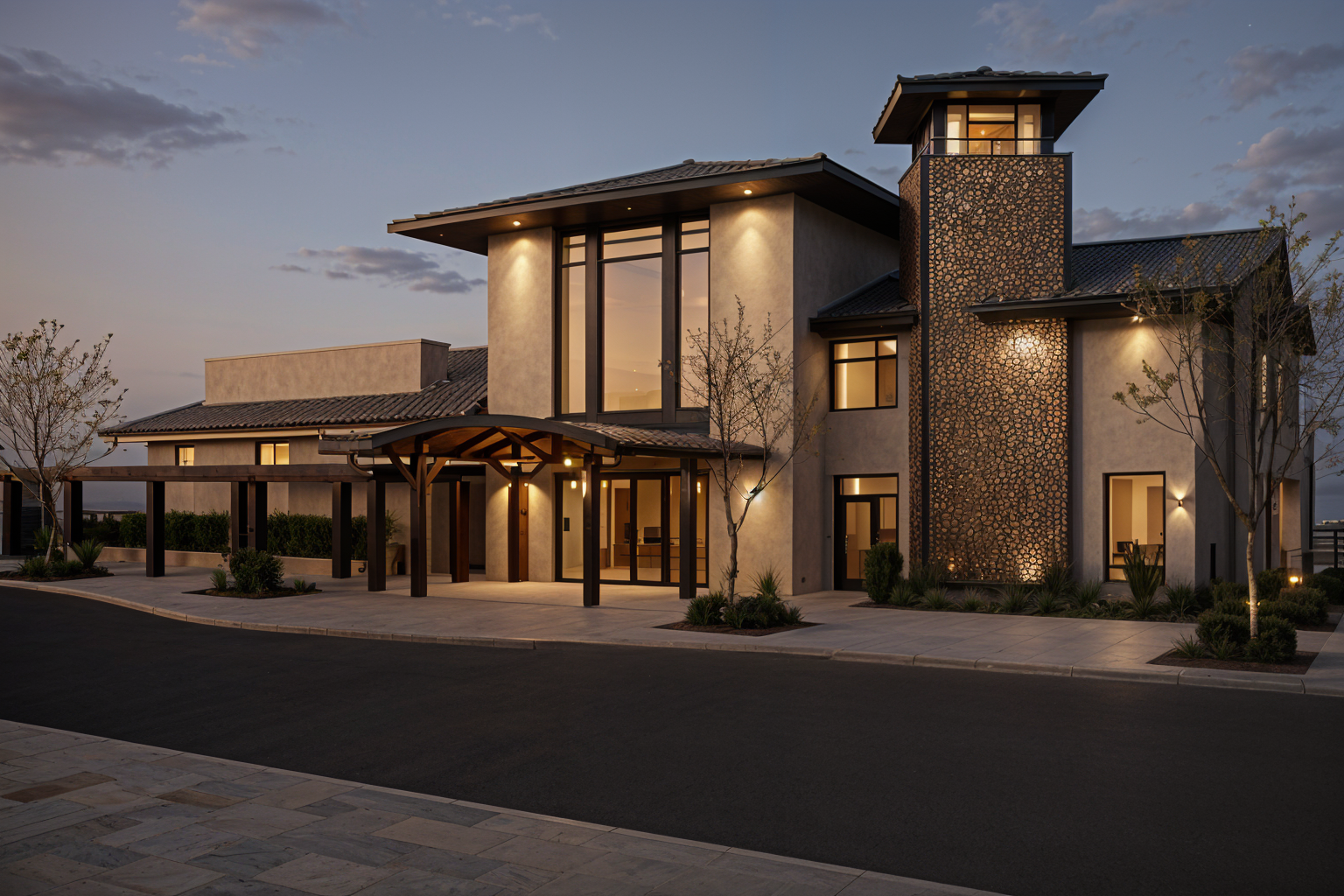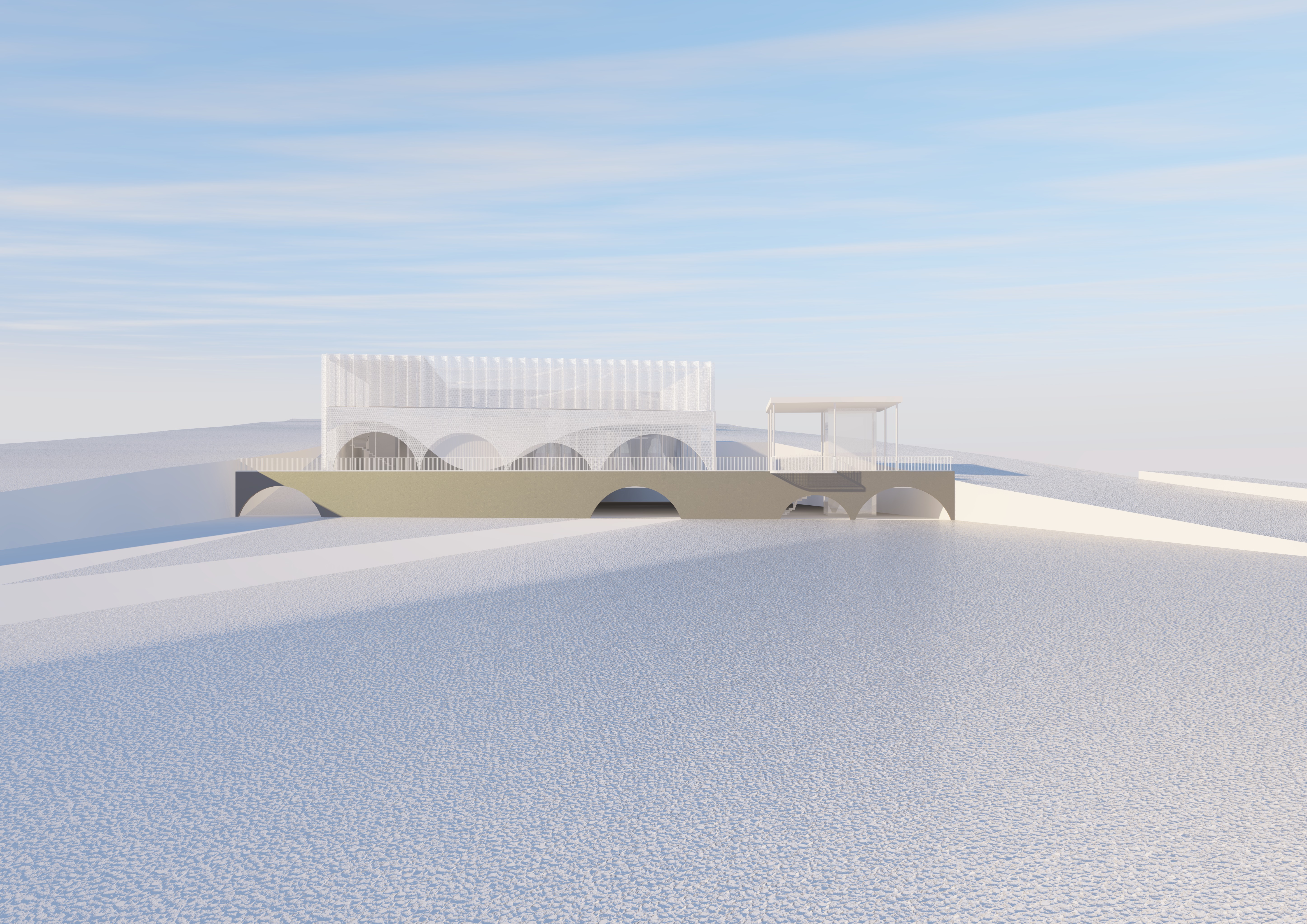 exterior shot in a low density environment render as close as possible to original image architecture