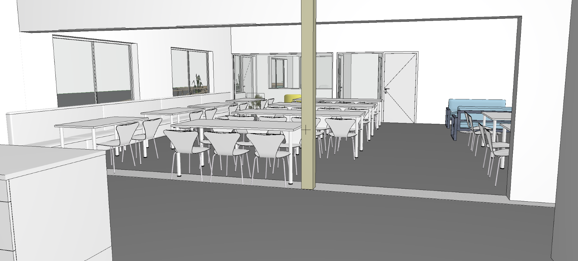 g r ett mysigt lunchrum med textilier och trevlig belysning