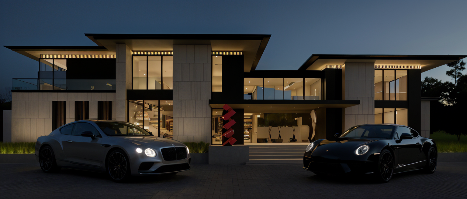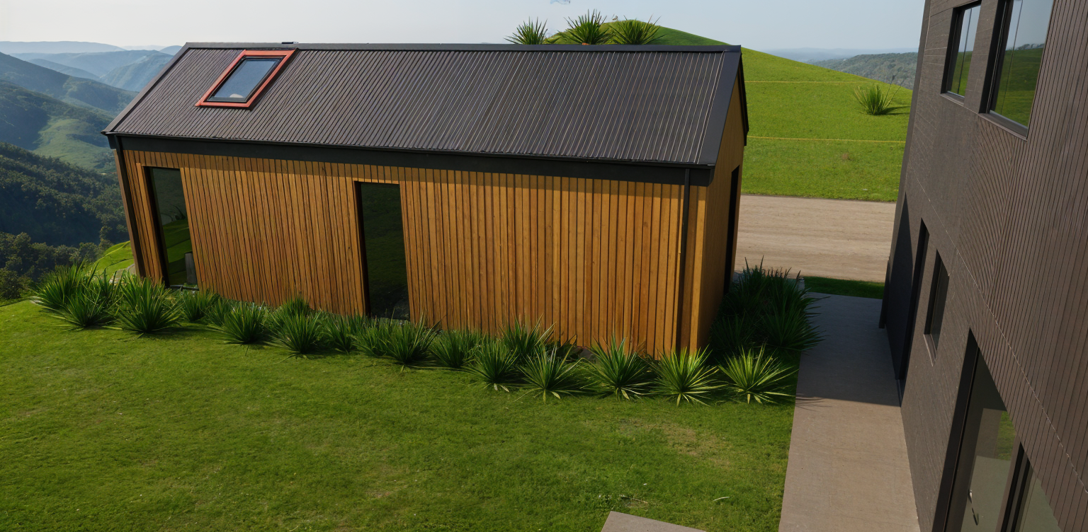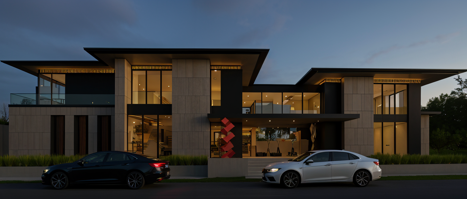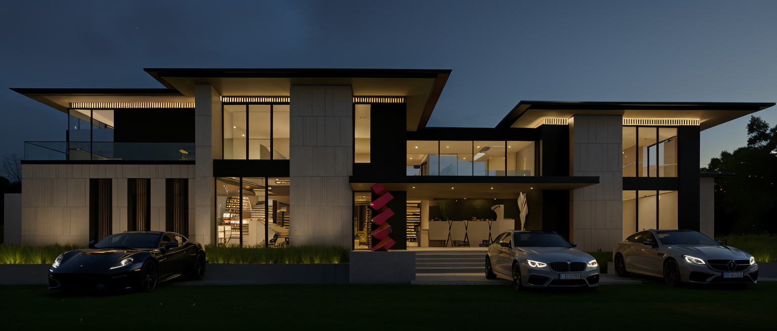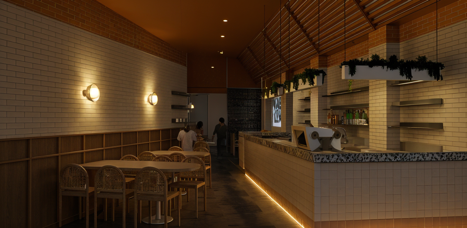 create realistic day time image turn wall lights on led strip lighting under shelves and hanging planter boxes screen are rear of image to be white perforated metal in white
