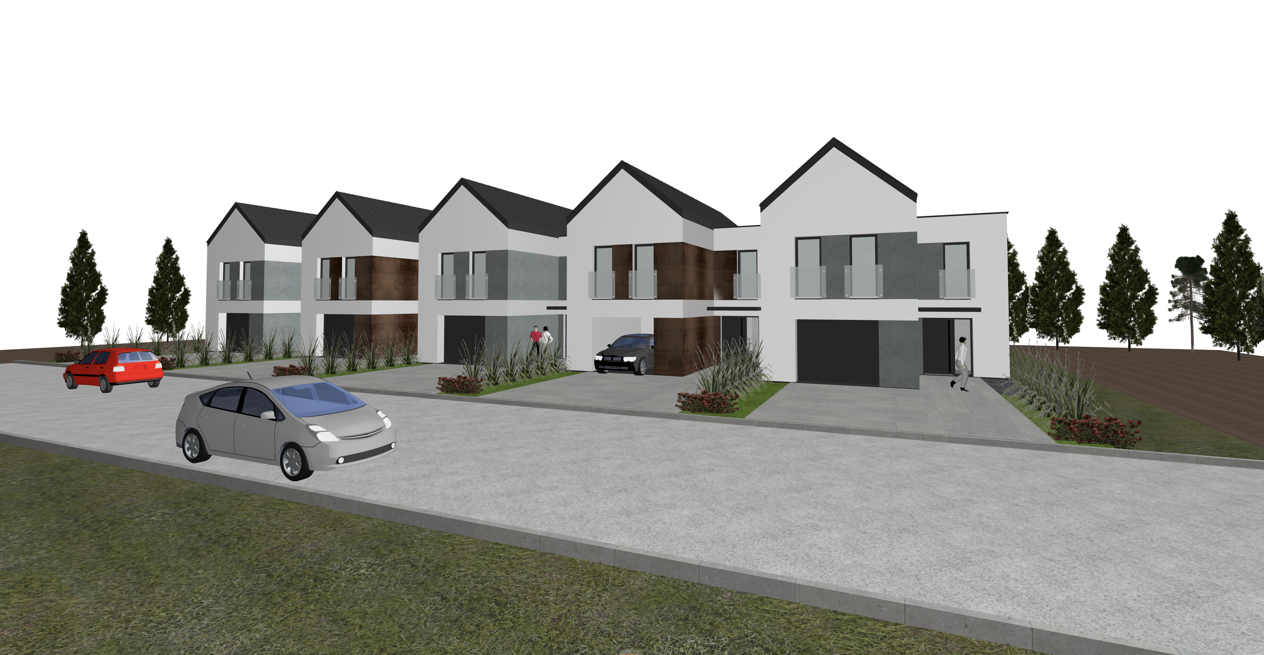 czarny dach elewacja bia a oraz betonowa i rdzawa du o zieleni z przodu li ci soneczny dzie