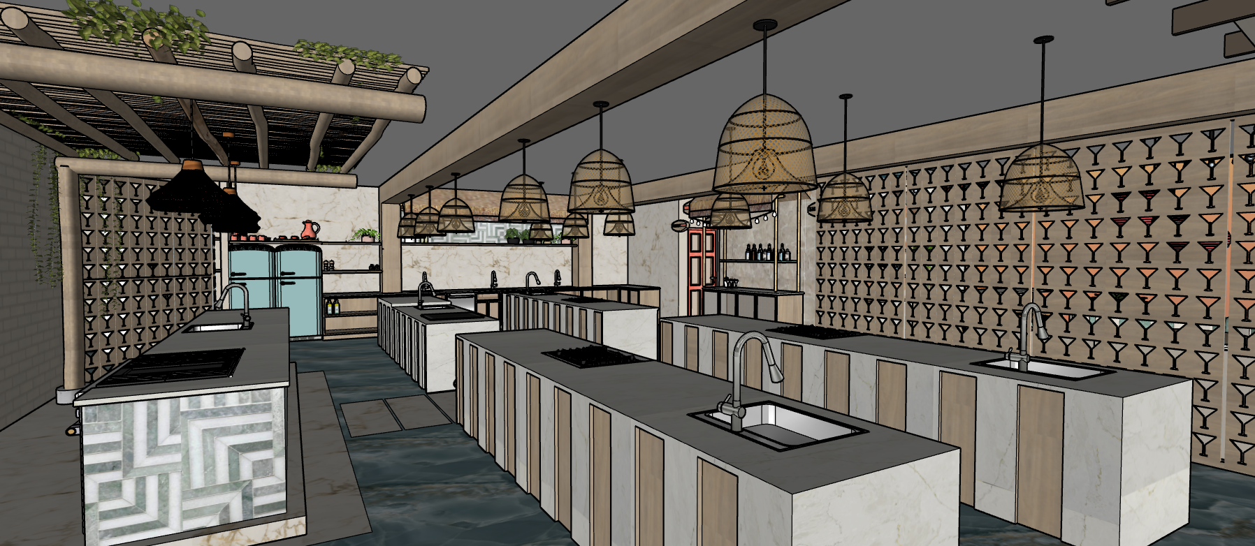 pi ce tr s lumineuse et clair lumi re naturel qui arrive par la droite luminaire au dessu de l ilot central l avant de couleur corail