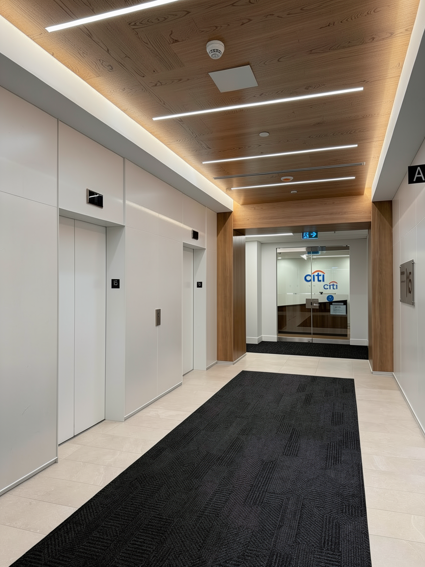 3d render of a modern cottage style house with vertical wood paneling in light beige add a warm medium gray roof with a textured shingle pattern use white trim for the windows and doors the front porch features dark brown wooden railings and stairs the atmosphere is warm and inviting set in a sunny afternoon with a clear blue sky surround the house with lush green grass and a few flowering plants for added charm