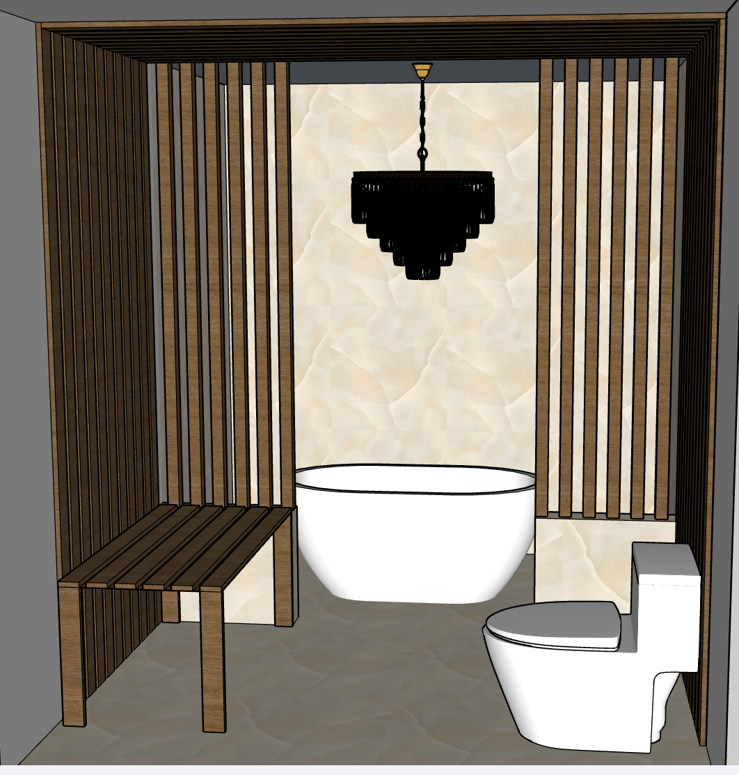 add a window behind the bath tub with a 36 w and 27 height with a evening theme