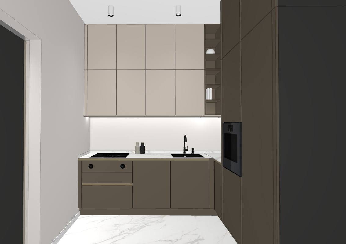 create a rendering without adding any decorative elements maintain the materials as they appear in the image add lighting beneath cabinets