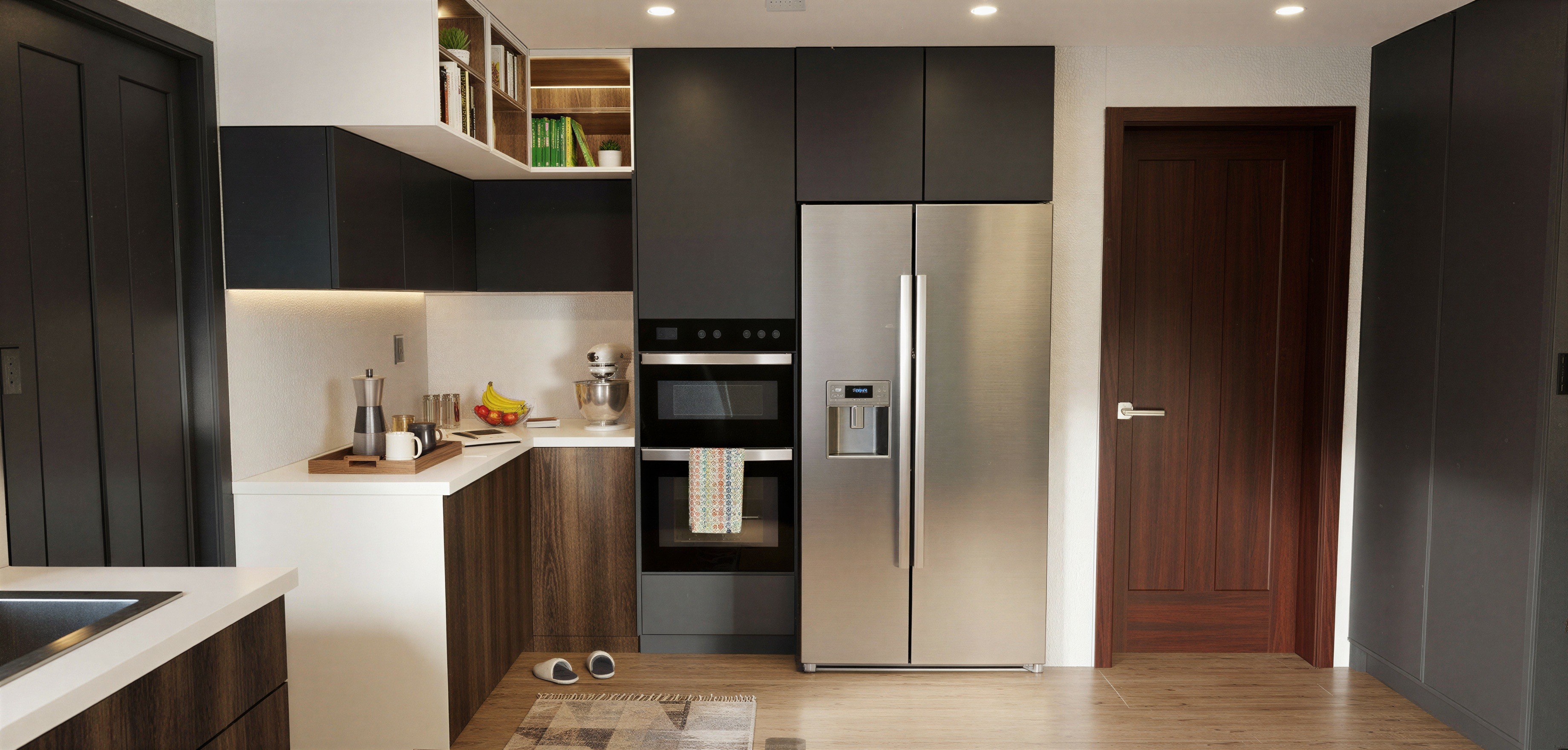 the lower cabinets should have lighter wood like oak by light i mean a shade that is mixture of beidge and grey ish colour