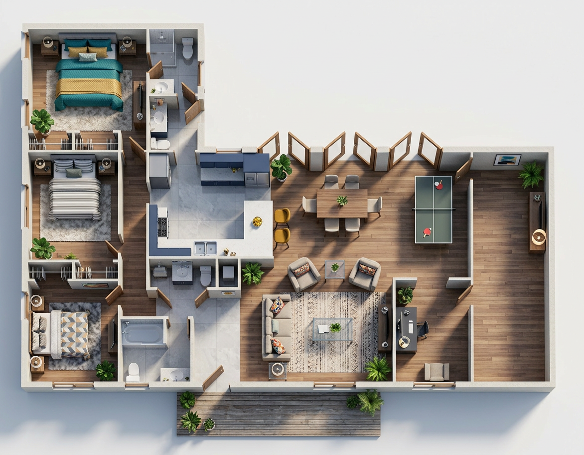 do not modify any design elements layout or dimensions keep everything identical to the current design the sole change is to flip mirror the garage from the left side to the right side of the house