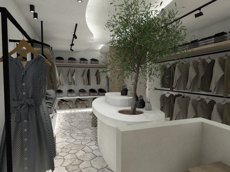 touristic shop exterior with natural colors add touristic things for sell and clothes and decor
