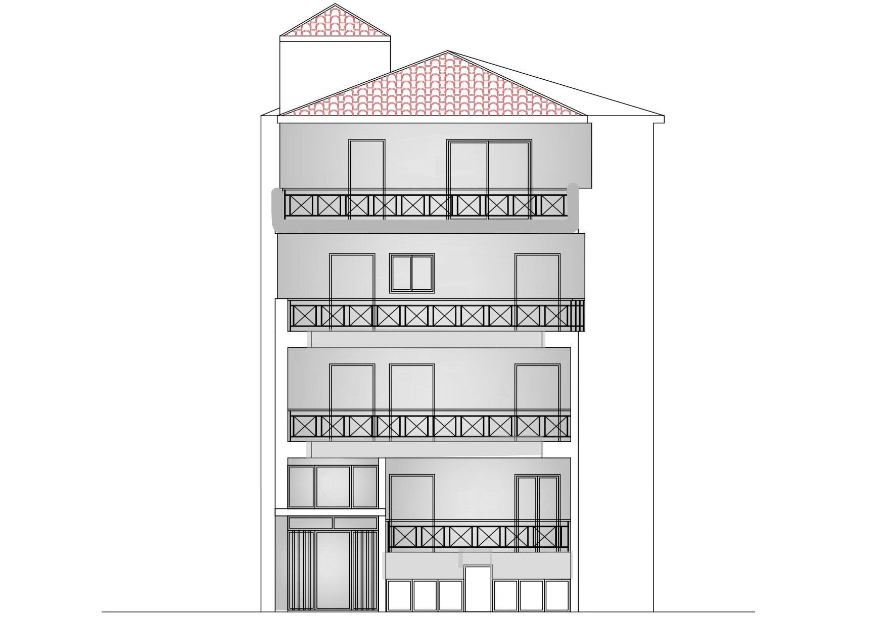 keep the walls white be carefull on the right side of the picture you see the side of the building the railings should be black and the windows white