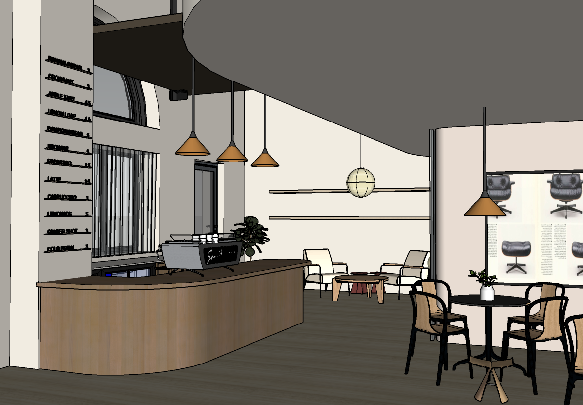 render with travertine flooring and slightly moody lighting keep everything the same but render realistically