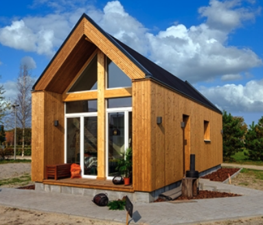 design a compact modern 2 bedroom 1 bath accessory dwelling unit adu with exterior dimensions of 16 feet wide by 28 feet deep the design should balance efficiency light and livability using modern materials and clean geometry suitable for prefabrication or steel frame construction design goals contemporary minimalist architecture with white exterior walls standing seam metal roof and black casement windows emphasize natural light cross ventilation and thermal performance create a cohesive interior layout with an open living kitchen area compact bath and two private bedrooms optimize for small lot or urban infill use while maintaining privacy and flow integrate outdoor connection small front porch deck or sliding doors to yard incorporate best practices in small space design and energy efficiency include in the concept 2d floor plan and 3d perspective renderings furniture layout for scale and usability window and door placement for maximum light and privacy roof slope direction for drainage and solar potential optional loft or vaulted ceiling over living area for volume architectural style scandinavian inspired modern minimalism clean lines simple materials natural wood accents and balanced proportions include a floor plan